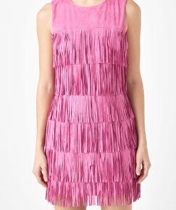 Flirty and fun, this Faux Suede Fringe Sleeveless Mini is perfect for your next night out. The round neckline flatters your face, while the fitted silhouette hugs your curves in all the right places. The back button closure and tiered fringe detail add a touch of drama. Pair with your favorite heels and a leather jacket for a rough-and-tumble look that’ll have heads turning all night long.