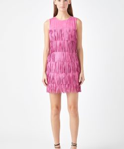 Flirty and fun, this Faux Suede Fringe Sleeveless Mini is perfect for your next night out. The round neckline flatters your face, while the fitted silhouette hugs your curves in all the right places. The back button closure and tiered fringe detail add a touch of drama. Pair with your favorite heels and a leather jacket for a rough-and-tumble look that’ll have heads turning all night long.