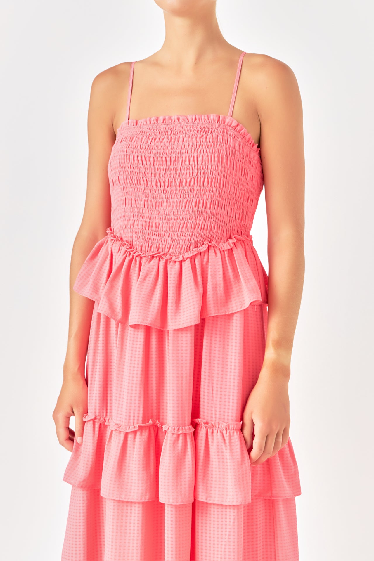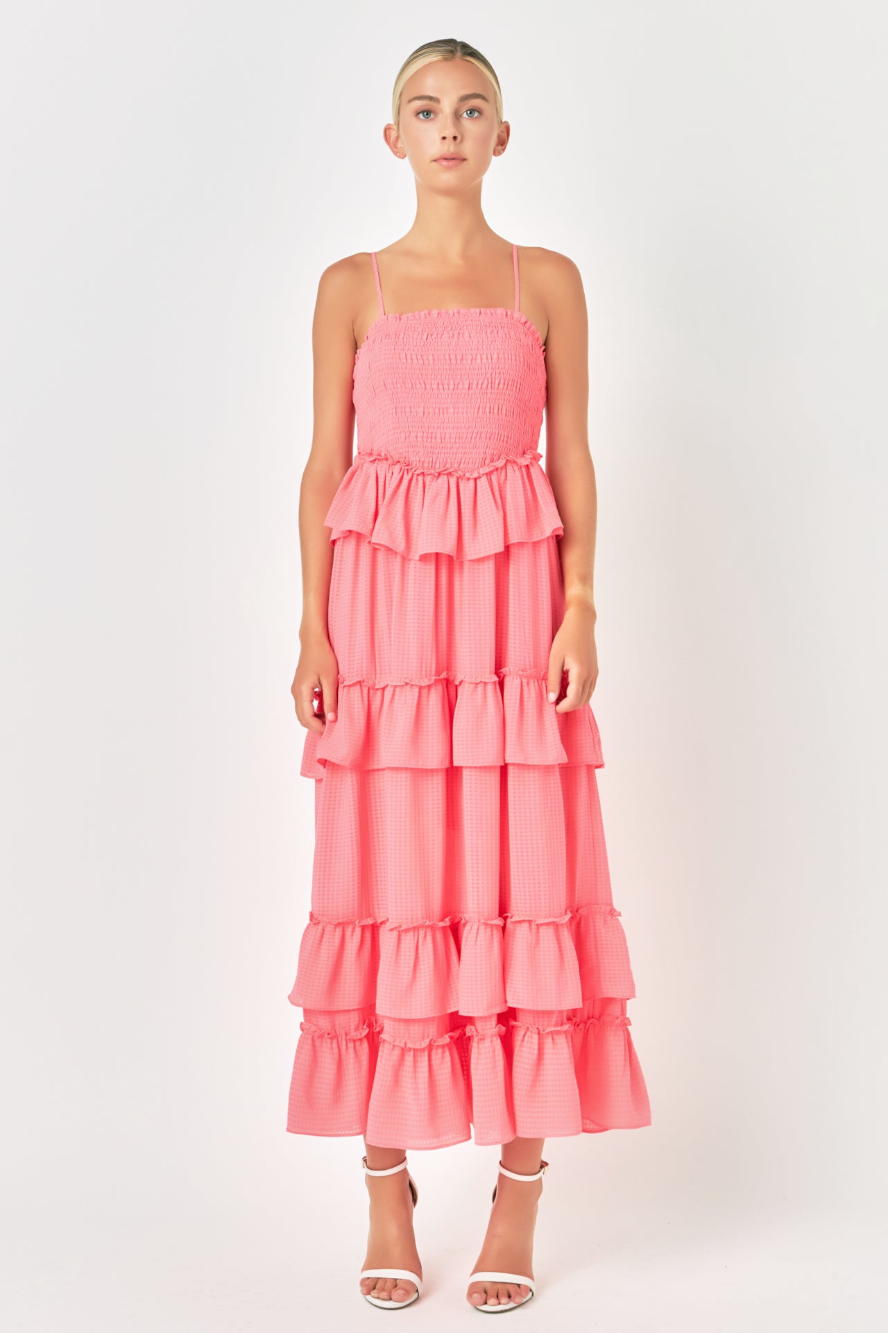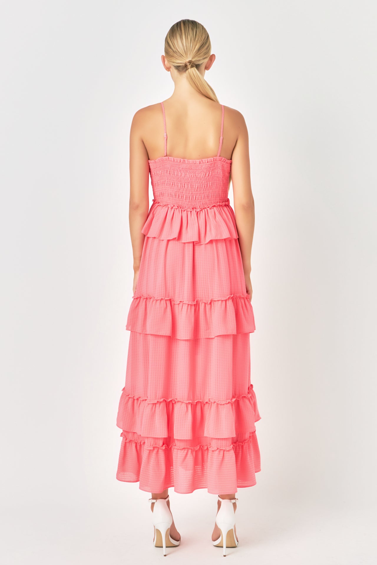 What’s not to love about this Multi Tiered Mini Gingham Maxi? With a sheer check print, adjustable spaghetti tie, smocked bodice, and multi tiered ruffles, this maxi is perfect for any summer occasion. The lining provides just the right amount of coverage while the maxi length keeps you cool and comfortable all day long.