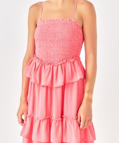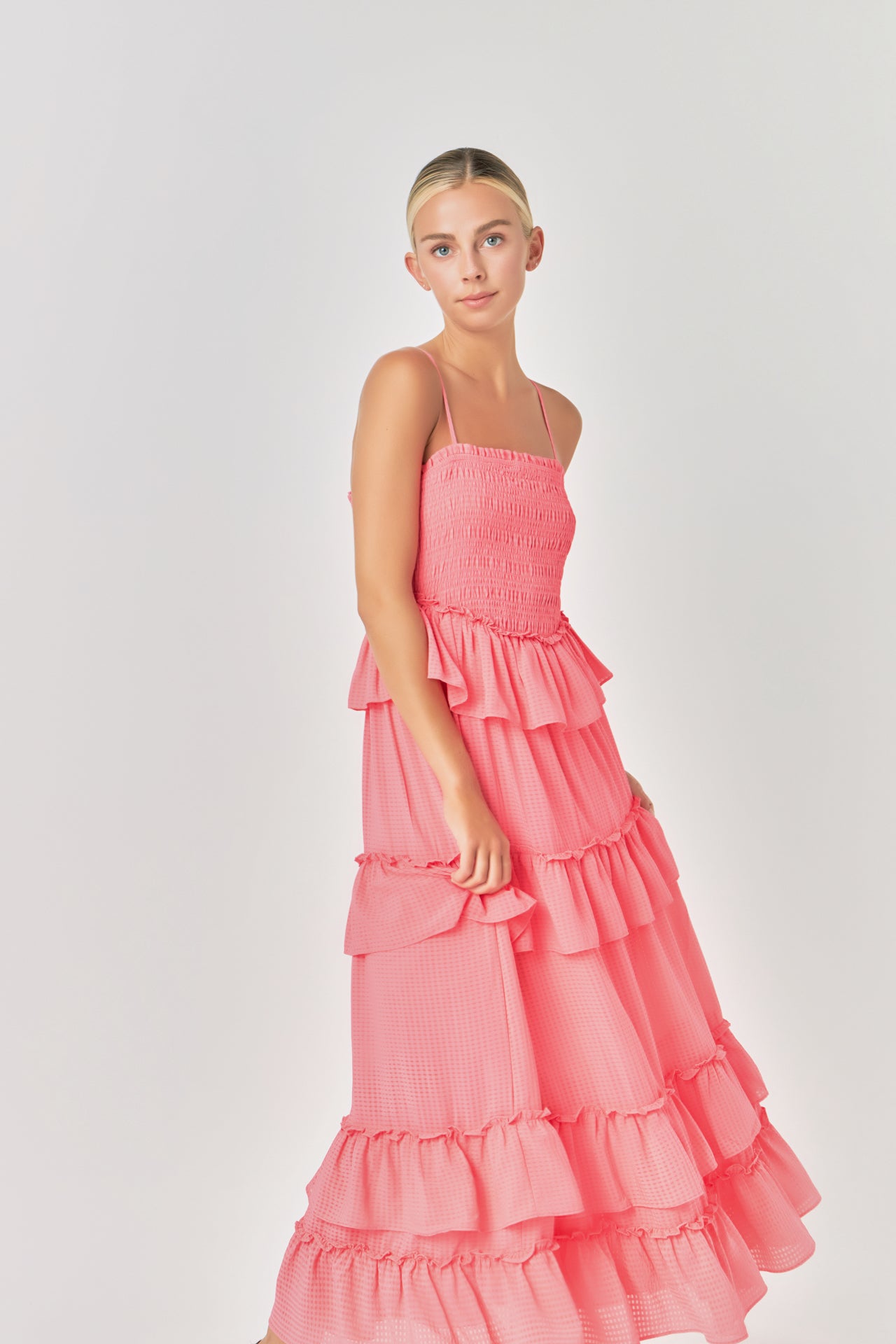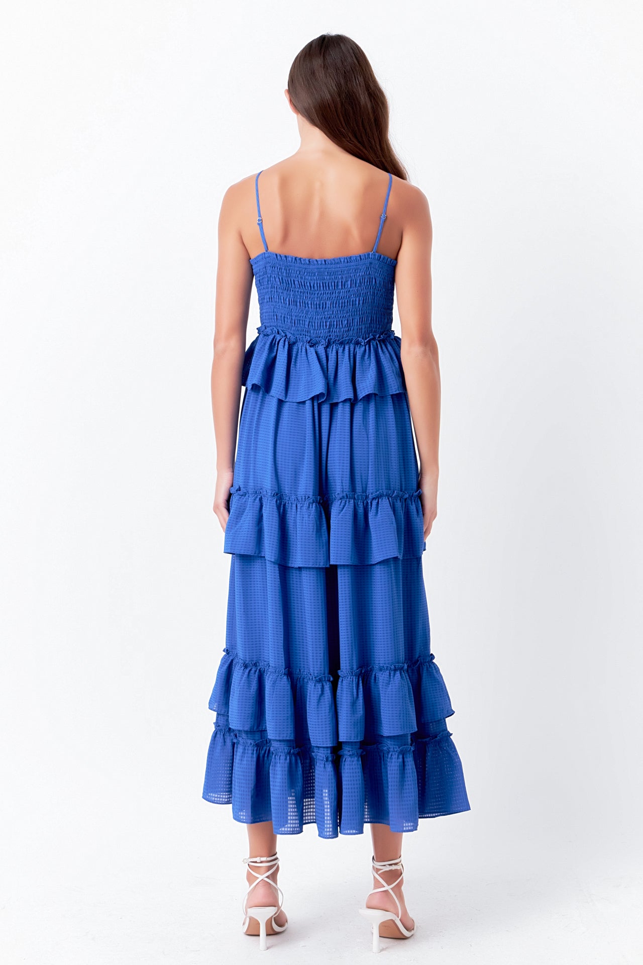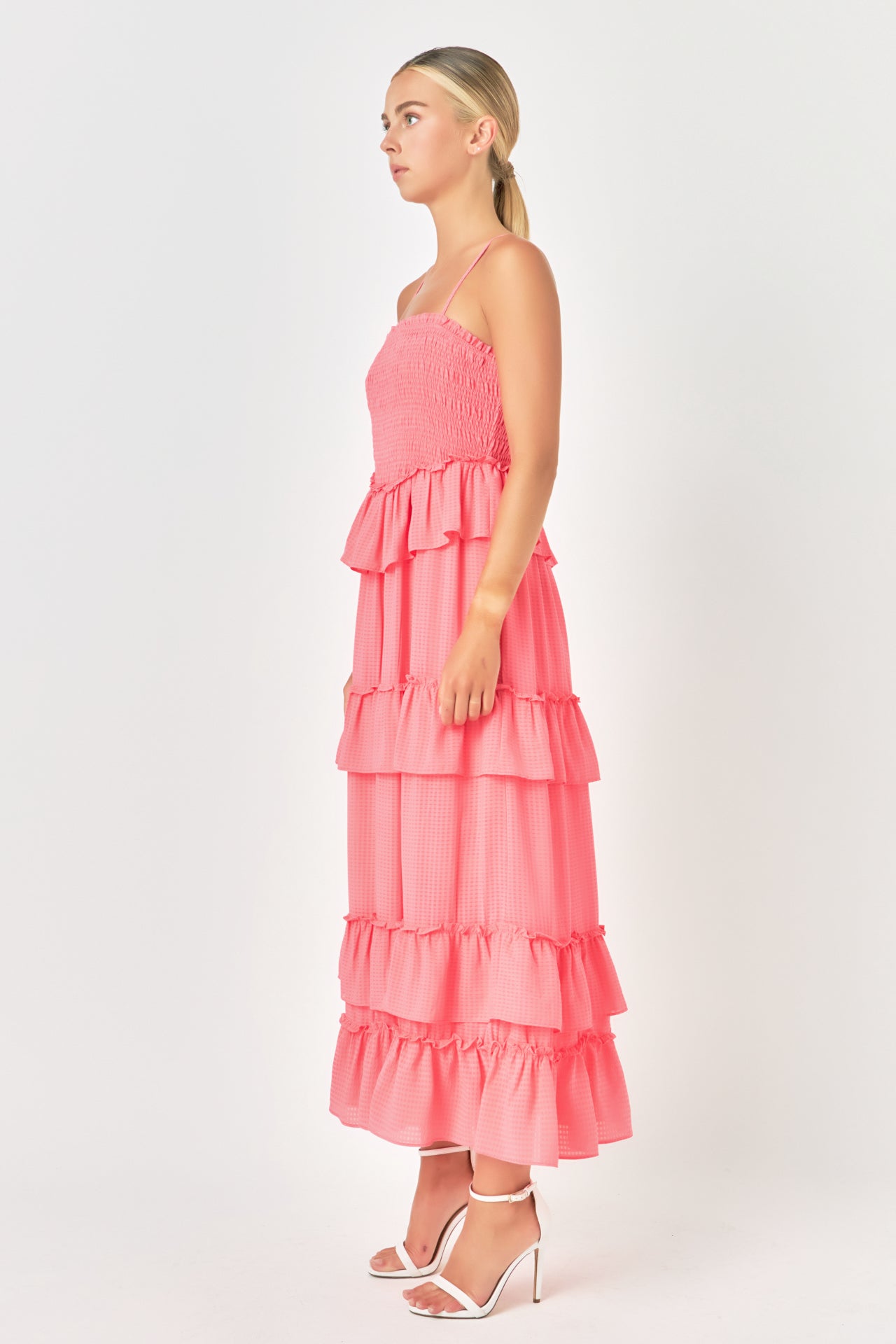 What’s not to love about this Multi Tiered Mini Gingham Maxi? With a sheer check print, adjustable spaghetti tie, smocked bodice, and multi tiered ruffles, this maxi is perfect for any summer occasion. The lining provides just the right amount of coverage while the maxi length keeps you cool and comfortable all day long.