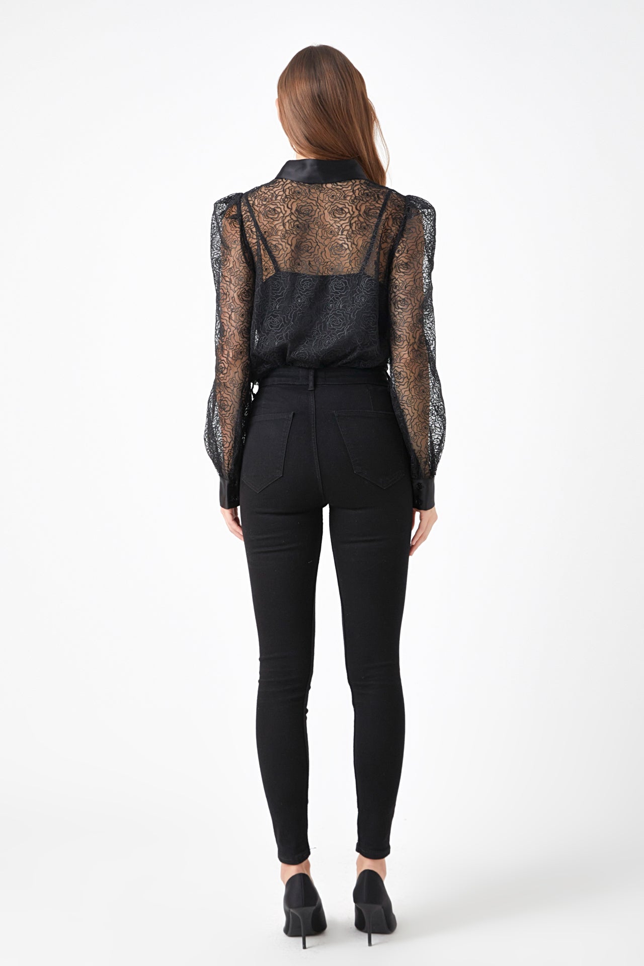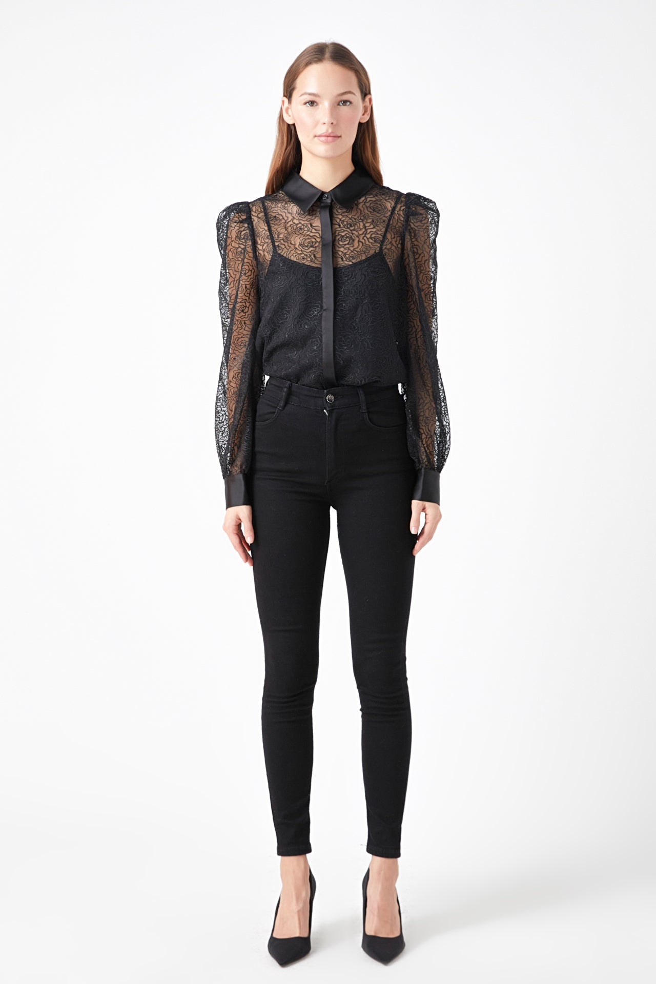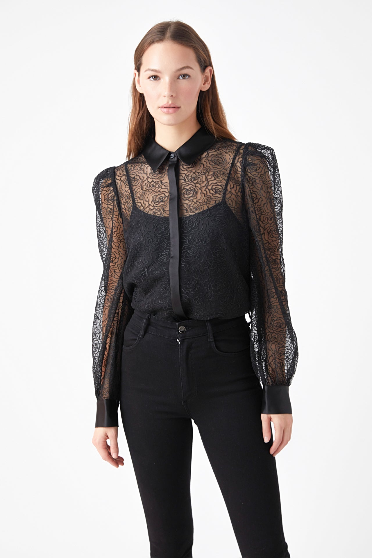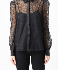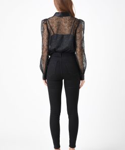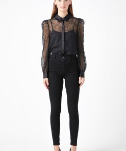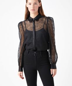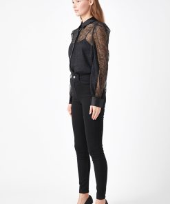 Endless Rose Women’s Embroidered Mesh See Through Blouse | Black