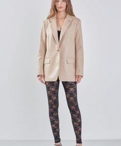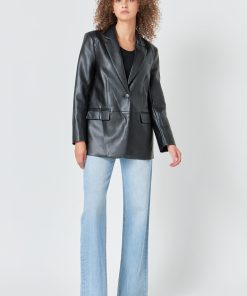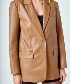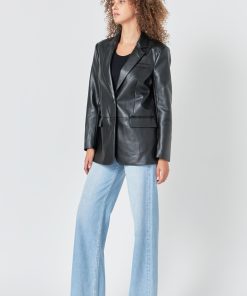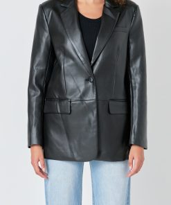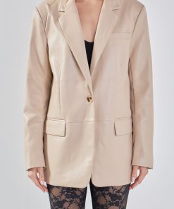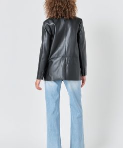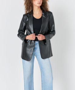 Up your style game with this Faux Leather Blazer and accomplish a chic, put-together look. Designed with shoulder pads, flap pockets, and notch lapels, this blazer will become your new go-to piece. Style it with a tweed dress, for work, or pair it with your favorite jeans, and a crop top, for drinks with friends.