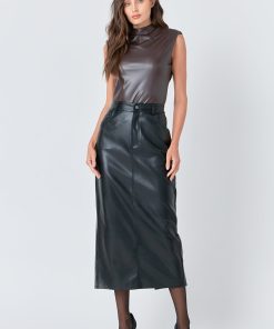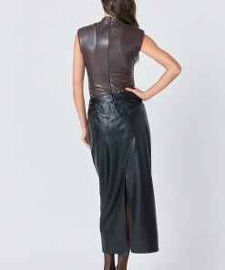 Introducing a sleek and modern twist on a classic style – our Leather Bodysuit. Crafted from high-quality leather, this show-stopping top exudes luxury and edginess. The mock neck design creates a bold look, while the sleeveless cut adds a touch of sophistication. Amp up the drama with the inclusion of statement shoulder pads, making this leather bodysuit a must-have for fashion-forward individuals. Perfect for a night out on the town or a daring addition to your everyday wardrobe, this versatile piece will turn heads and leave a lasting impression. Don’t miss out on this must-have leather essential.
