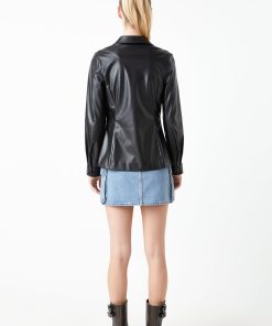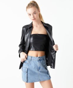 Upgrade your wardrobe with this stunning Faux Leather Jacket Set from our collection. This two piece set features a collared open suit with a single front cover button. Made from high-quality faux leather this jacket set will keep you looking smart and stylish. Show off your fashion-forward style while staying warm and comfortable. Get the look you desire and make a statement in this sophisticated two-piece suit set. Stand out from the crowd and pair this jacket set with your favorite dress for a unique and stylish look.