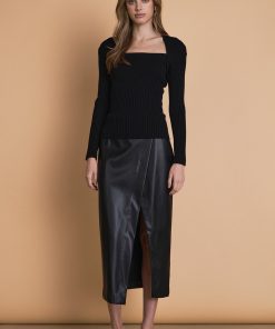 Looking for a versatile addition to your wardrobe? Look no further than our Faux Leather Midi Skirt! Made from high-quality leather this skirt offers a perfect blend of style and durability. The front slit adds a touch of sultry to your outfit while the side zipper ensures a secure fit. With a high waist design it flatters your figure and enhances your curves. Elevate your fashion game with this must-have skirt that can be dressed up or down for any occasion. Shop now and embrace the timeless elegance of leather!