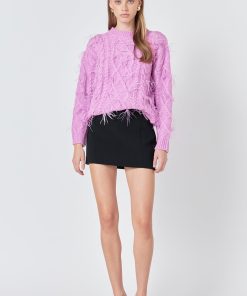 Stay warm while looking stylish in this ultra-luxe Feather Detail Sweater. This cozy knit is designed with a round neckline and ribbed texture for an ultra-cozy feel. The knitted cables are exquisitely detailed with beautiful feather motifs making it both eye-catching and unique. Show off your style with this one-of-a-kind sweater and stay warm in luxury and comfort. Perfect for chilly winter days this knit is sure to add a little flair to your wardrobe.
