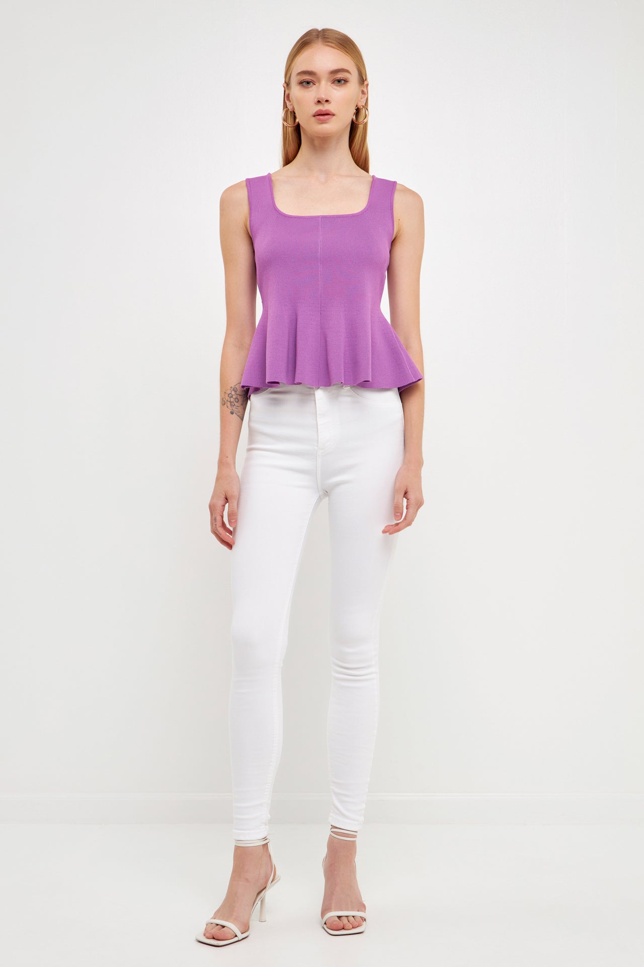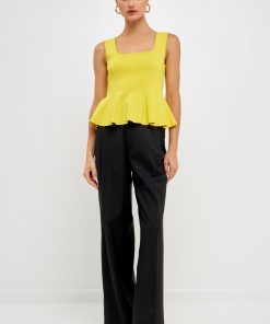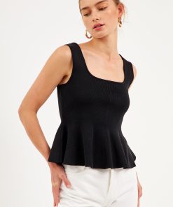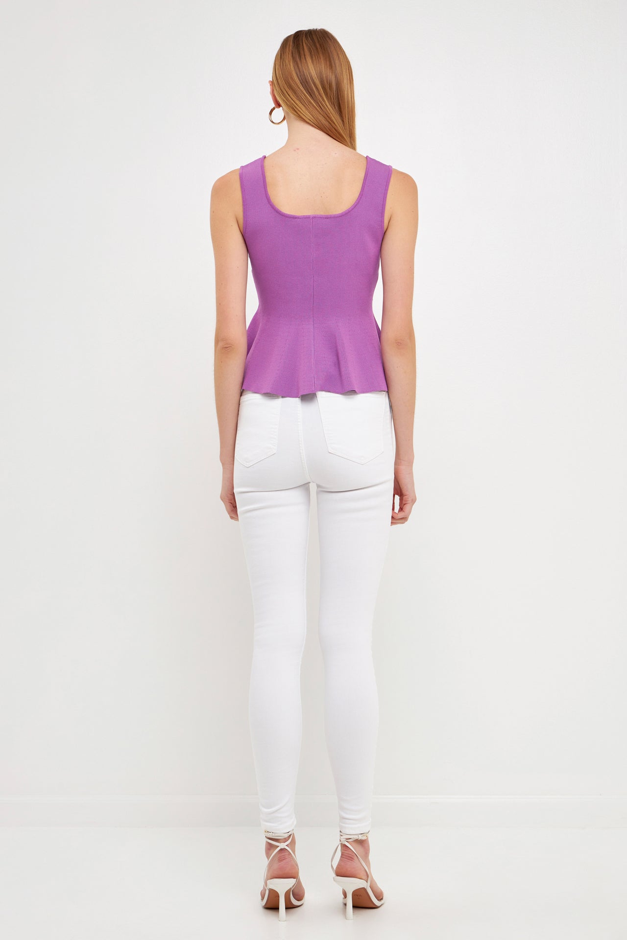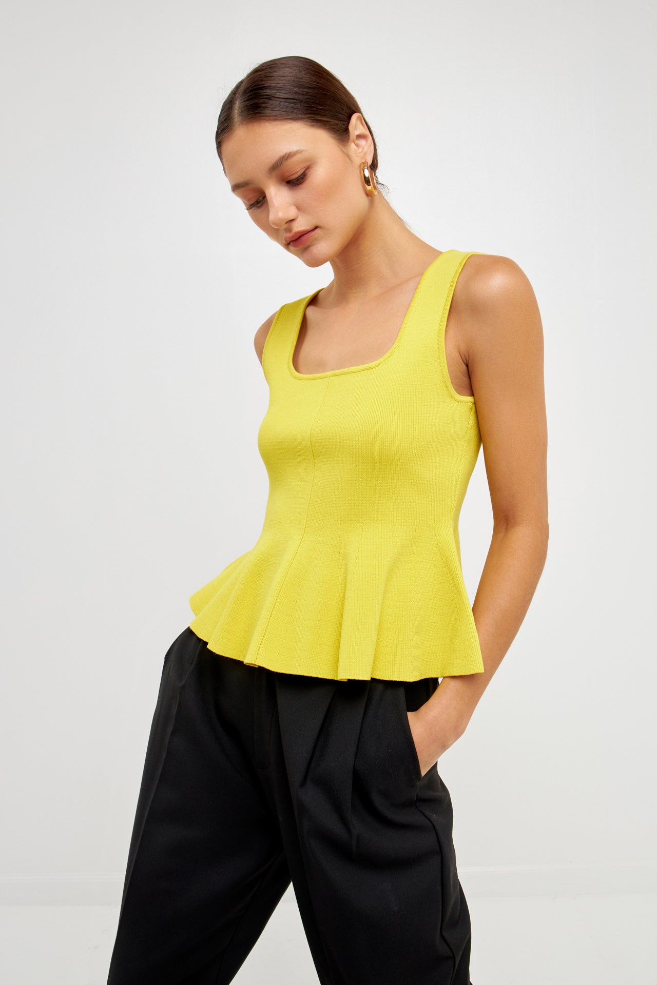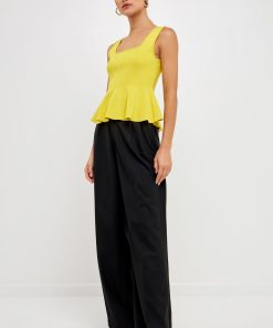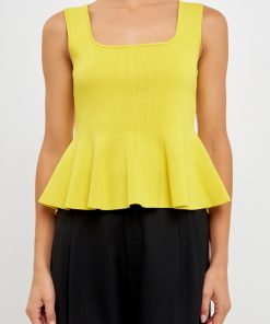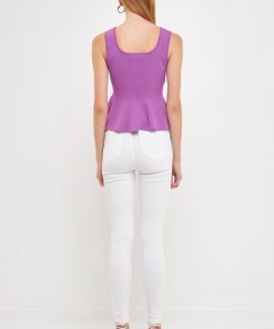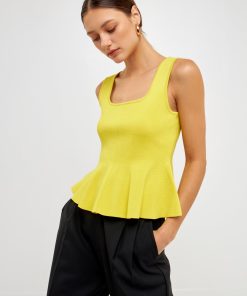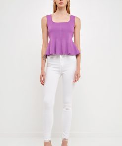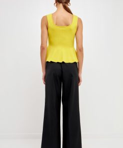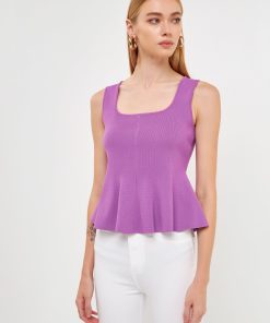 Endless Rose Women’s Flare Detail Knit Tank Top | Black|lime|purple