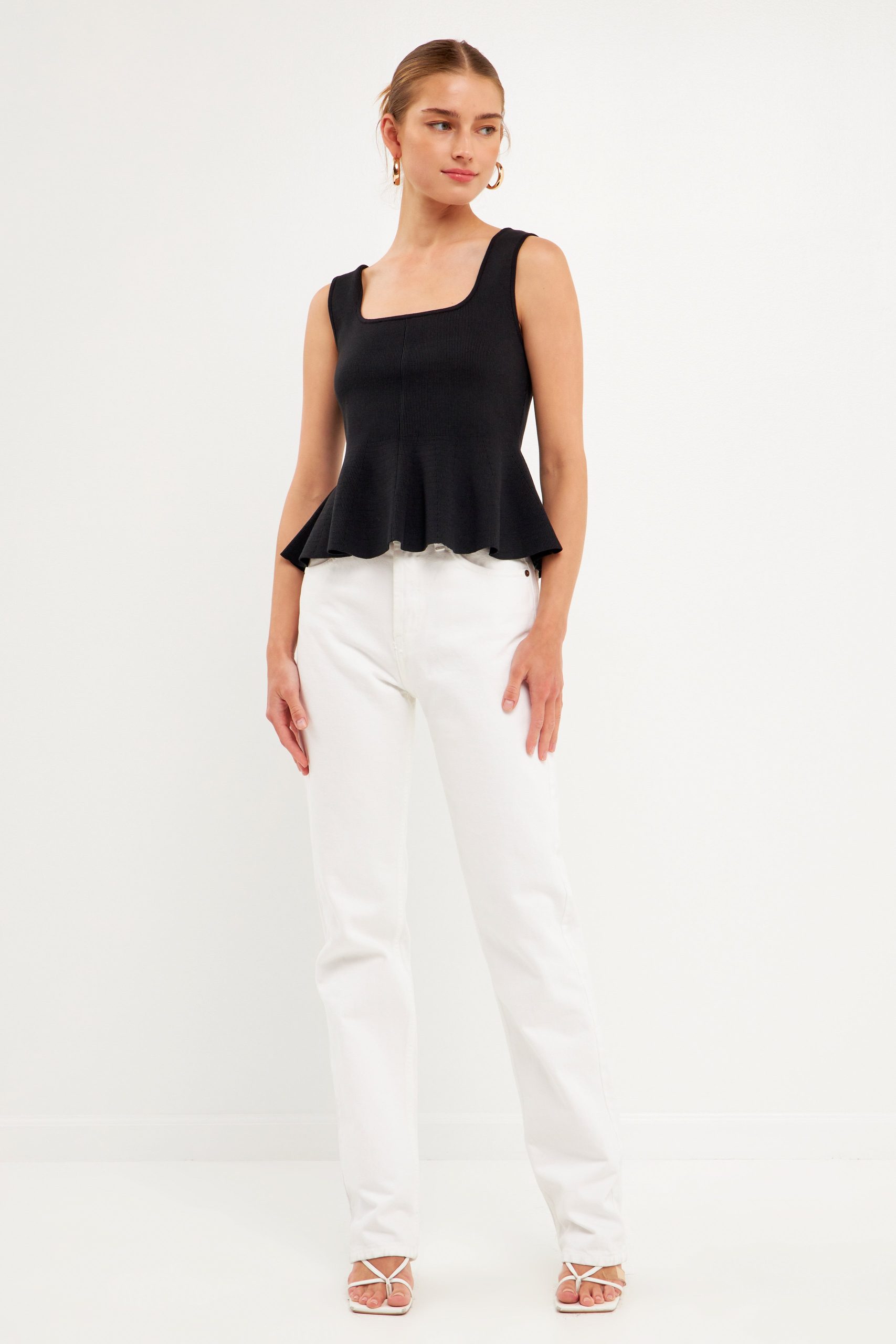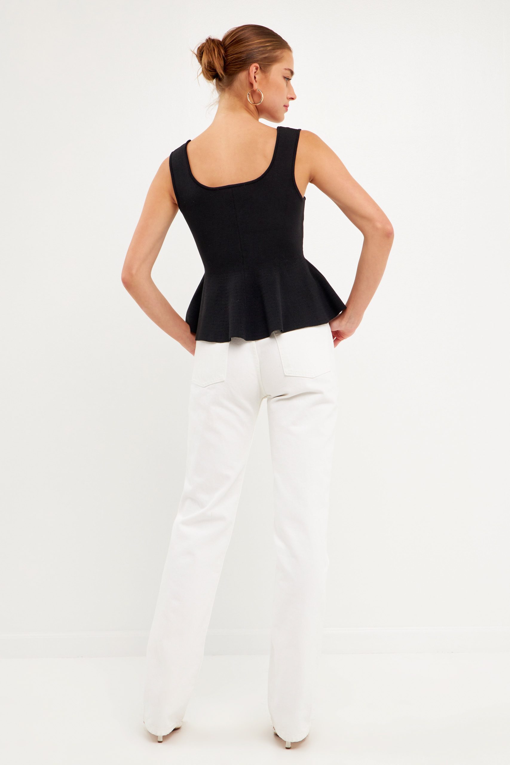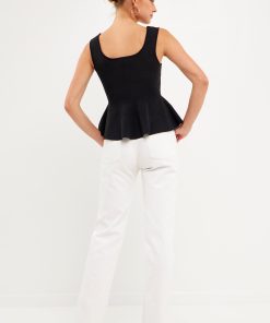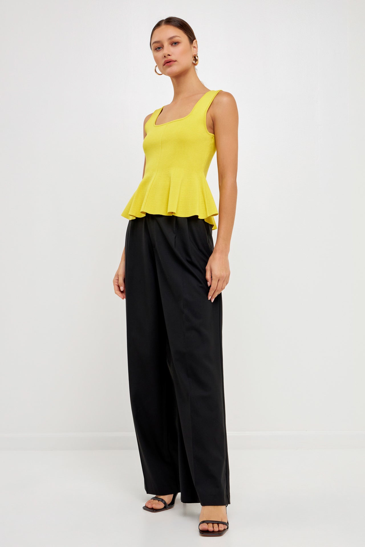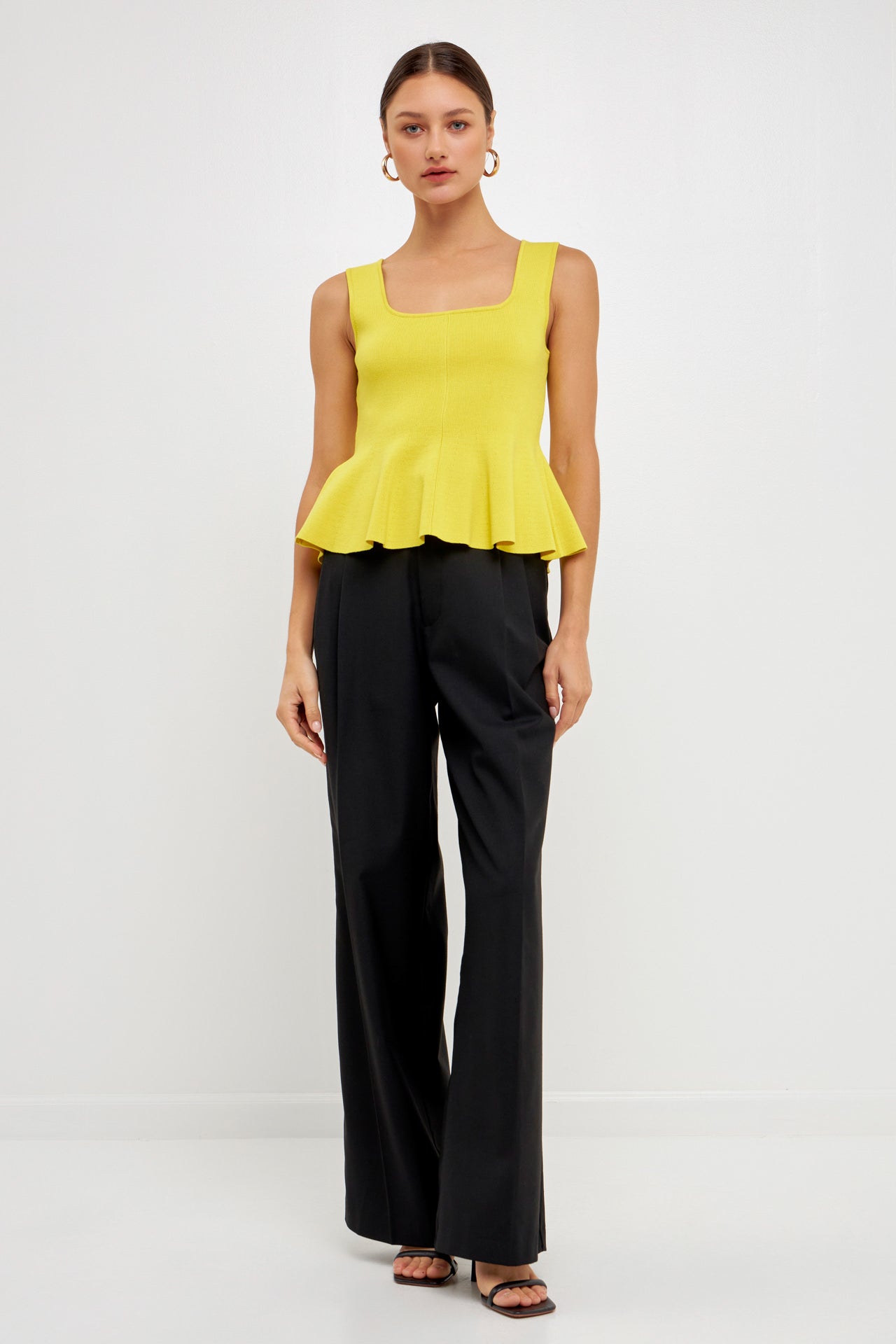 Endless Rose Women’s Flare Detail Knit Tank Top | Black|lime|purple