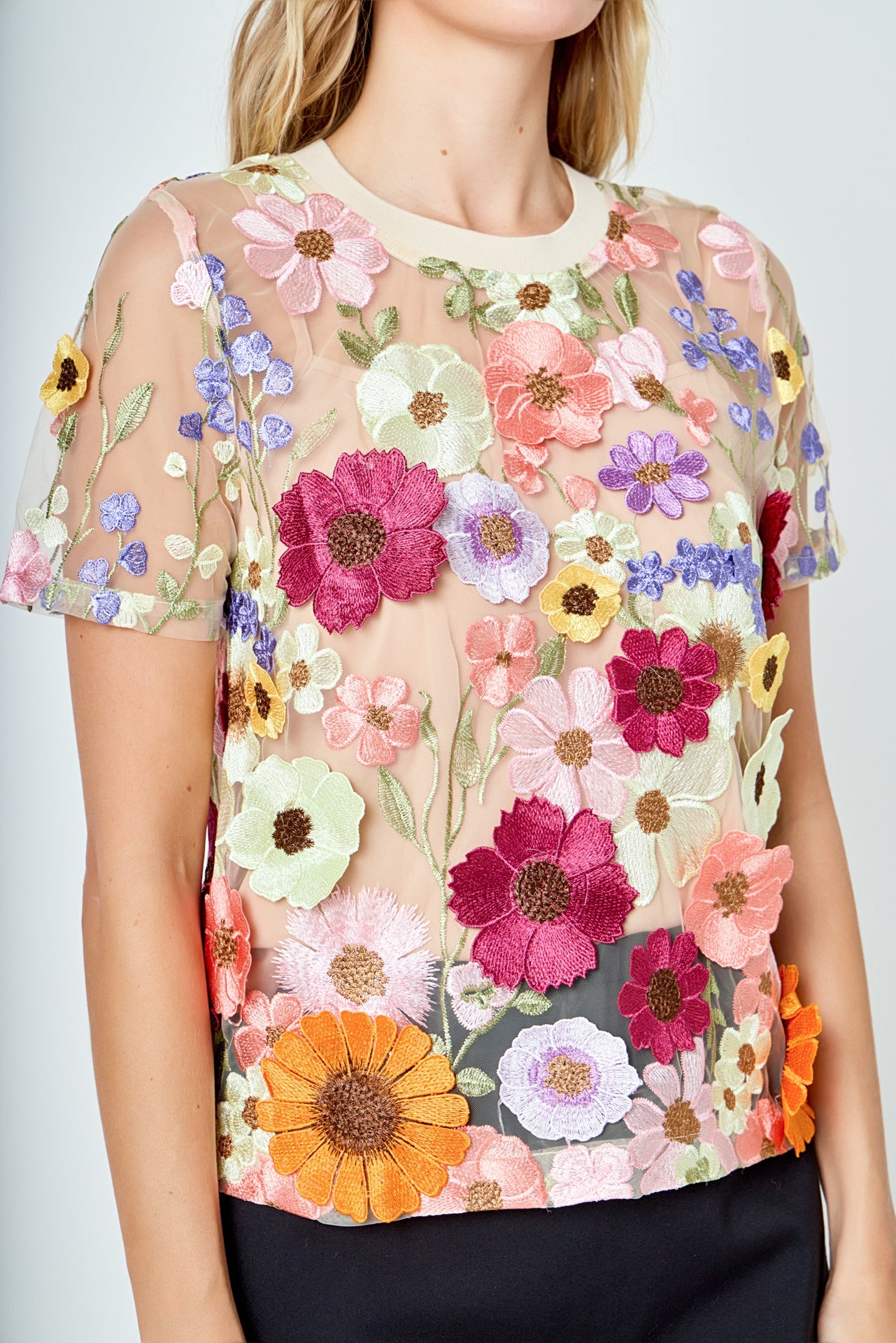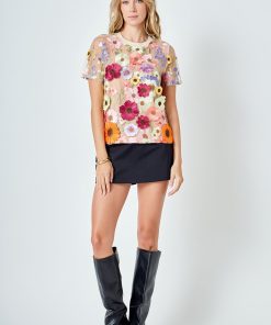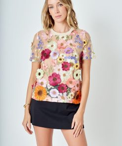 The Floral Embroidered Top is a must-have this season to show off your style. Crafted with beautiful floral embroidery this regular fit top features short sleeves a round neckline and a figure-flattering fit. Unique eye-catching and stylish this top is the perfect fit for all occasions. Look and feel your best with this must have piece in your wardrobe.