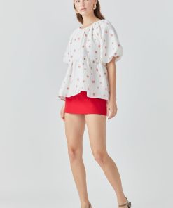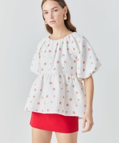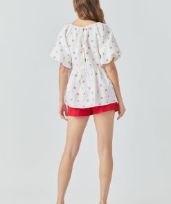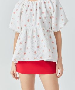 Endless Rose Women’s Floral Jacquard Spg Tie Flounce Blouse | White