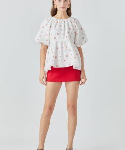 Endless Rose Women’s Floral Jacquard Spg Tie Flounce Blouse | White
