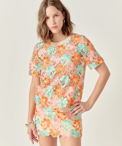 Elevate your wardrobe with our stunning Floral Short Sleeve Top. This top features delicate, vibrant florals that will add a touch of femininity to any outfit. It is also embellished with intricate details to give it a touch of elegance. The round neckline adds a classic and versatile touch to this top. Perfect for any occasion, whether it’s a casual day out or a special event. The short sleeves make it perfect for warmer weather, keeping you both stylish and comfortable. Shop now and add some floral flair to your wardrobe.