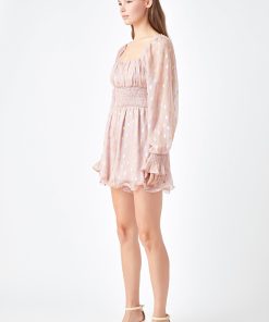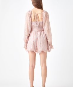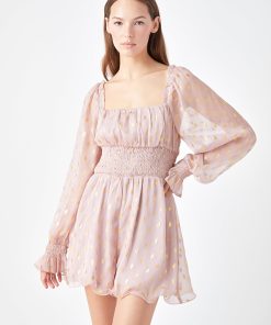 This Foiled Dot Long Sleeves Romper is an elegant, sophisticated choice for any special occasion. It features an all-over foiled dots print, an elastic waist, smocking detail on the sleeve hem, and a romper design for a unique, fashionable look.