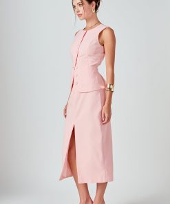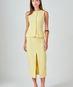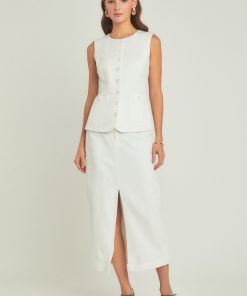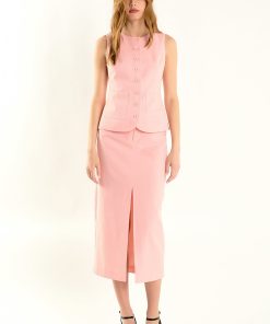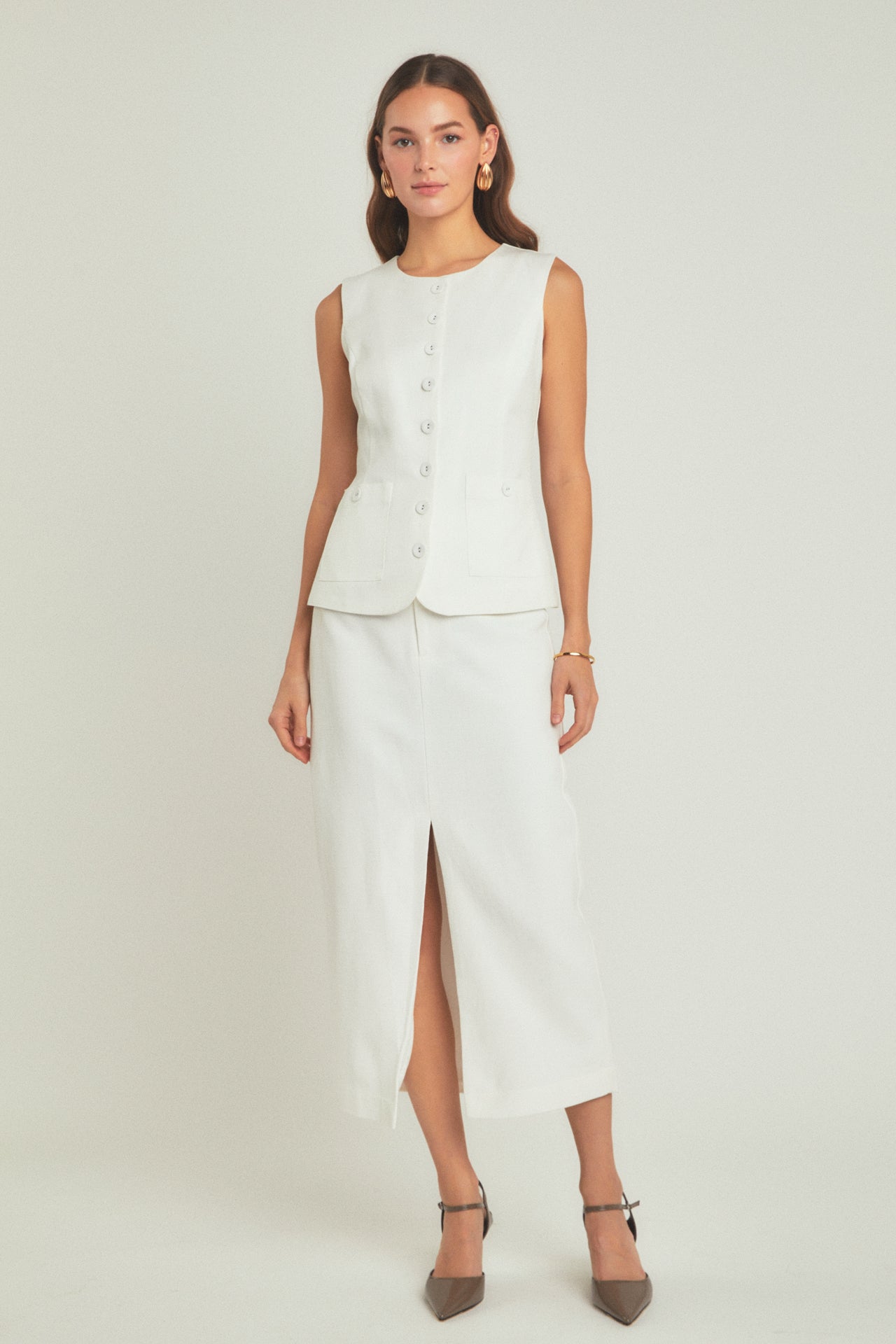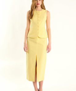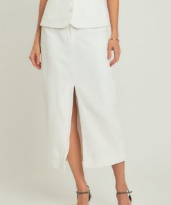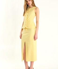 Upgrade your wardrobe with our front slit linen midi skirt. Made from high-quality linen, this skirt is the perfect choice for both style and comfort. Its midi length adds an elegant touch while the waistband ensures a flattering fit. The hook and bar closure adds a modern touch to this classic piece. Perfect for any occasion, this skirt is a must-have in your collection. Embrace the beauty of linen and stand out with our front slit midi skirt. Shop now and elevate your style game!