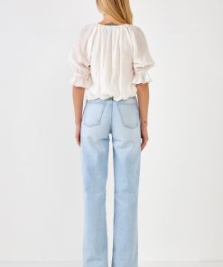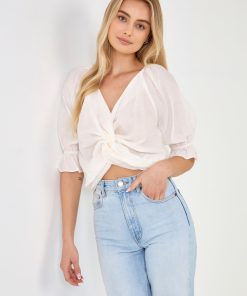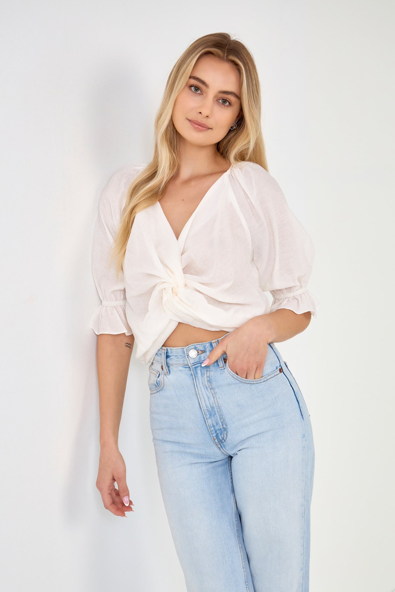 This top is perfect for a night out! The front twist detail and puff short sleeve give this top a unique and stylish look. It’s also relax fit, making it comfortable to wear. Dress up or dress down this top, it’s perfect for any occasion!