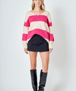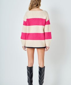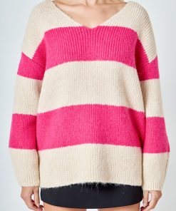 Get cozy and stylish with our Fuzzy Striped Oversized Sweater. With its oversized fit this sweater is perfect for snuggling up on chilly days. The soft hairy texture adds a touch of whimsy to your outfit while the V neckline adds a flattering element. The classic striped design adds a pop of color and pattern. Perfect for any occasion this sweater will keep you warm and on-trend. Don’t miss out on this must-have piece for your fall wardrobe.