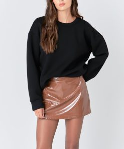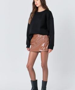 Elevate your wardrobe with our must-have Glossy Leather Skort. Designed to flatter, this skort features a high-waisted fit that hugs your curves in all the right places. The glossy leather material gives it a luxurious look and feel, perfect for any occasion. Plus, with convenient side pockets, you can keep your essentials close at hand. The side 3 lines top stitch detail adds a touch of edginess to the design. The perfect combination of fashion and function, this skort is a must-have for any fashion-forward individual. Shop now and rock the trendiest look of the season!
