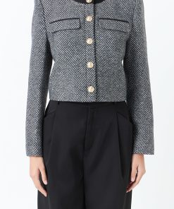 Get ready to break the fashion molds with this Herringbone Contrast Blazer! A round neckline and long sleeves complement the unique herringbone design while contrast details add an edgy yet classy element. This blazer can be dressed up or down for any occasion and will make you stand out from the crowd. It is the perfect choice for a bold and modern look. Get the perfect wardrobe staple for any season and style. Grab yours today and let the compliments pour in!