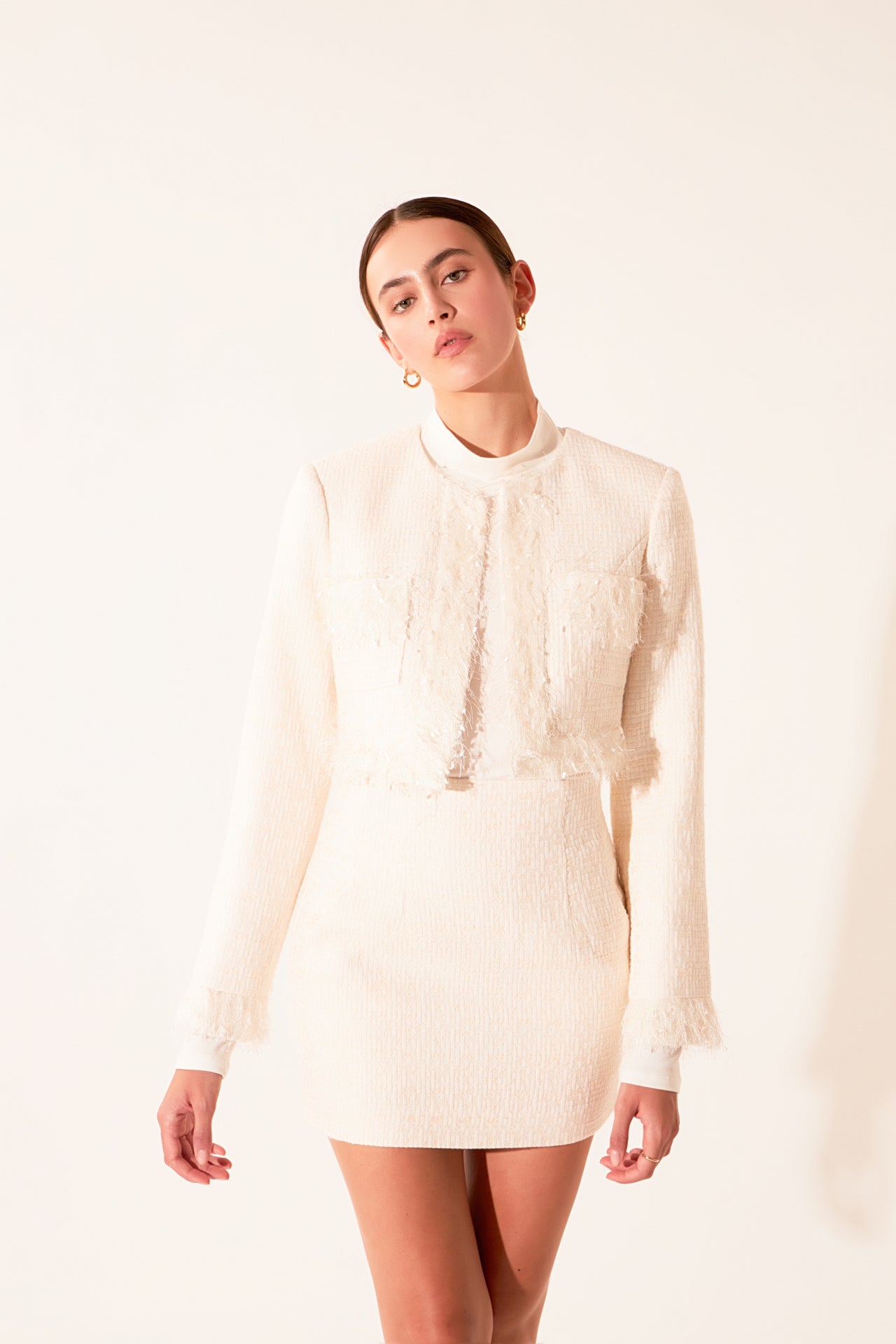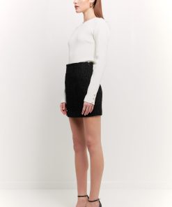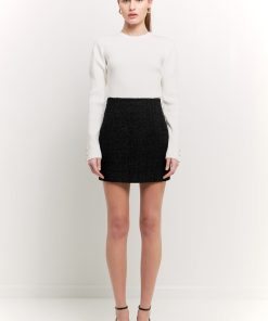 Endless Rose Women’s High-waisted Tweed Skirt | Ivory|red|black