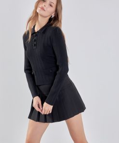 Our Jewel Buttoned Knit Long Sleeve Top is perfect for adding a little extra sophistication to your wardrobe. It is made with a thick rib knit fitted silhouette and collared neck. The unique jewel button accents add a touch of glamour making this top perfect for anything from a casual day out to a more formal event. With this timeless yet versatile design, you will look and feel your best.
