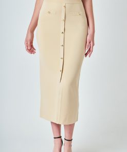 Elevate your skirt game with our knitted midi skirt. Made from soft and stretchy knit fabric, this skirt offers ultimate comfort and style. The front pockets add functionality while the A-line fit flatters your figure. With its midi length, this skirt is versatile for all occasions. Perfect for dressing up or down, this skirt is a must-have in your closet. The perfect combination of comfort and style, our Knit Pocketed Midi Skirt is the ultimate go-to piece for any fashion-forward individual. Upgrade your wardrobe with this on-trend skirt today.