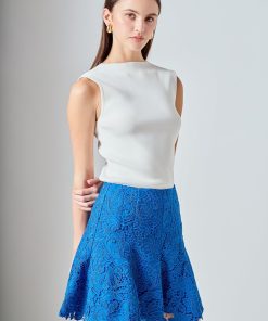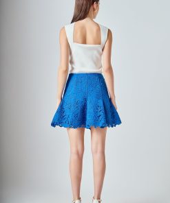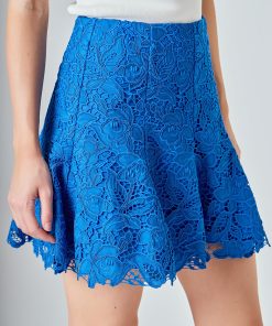 Our Lace Fit and Flare Mini Skirt is playful yet elegant. The feminine silhouette cinches at the waist before flaring out, while the intricate lace fabric adds a delicate and romantic touch. Designed with a sleek side zipper for ease and fit, this mini length skirt is perfect for evenings out or weekend occasions. A versatile piece that brings sophistication and fun to your wardrobe.
