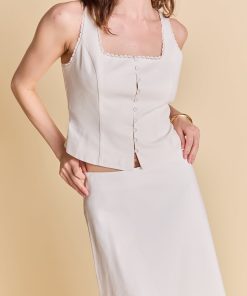 Introducing our Lace Trim Linen Top, the perfect blend of classic and trendy. Made from luxurious linen, this top is lightweight and breathable, perfect for hot summer days. The delicate lace trim adds a touch of elegance, while the sleeveless design keeps you cool and stylish. With a button-down front, you can easily adjust the fit to your liking. This versatile top can be dressed up for a special occasion or dressed down for a casual day out. Upgrade your wardrobe with our Lace Trim Linen Top and elevate your style game. Order now while supplies last!