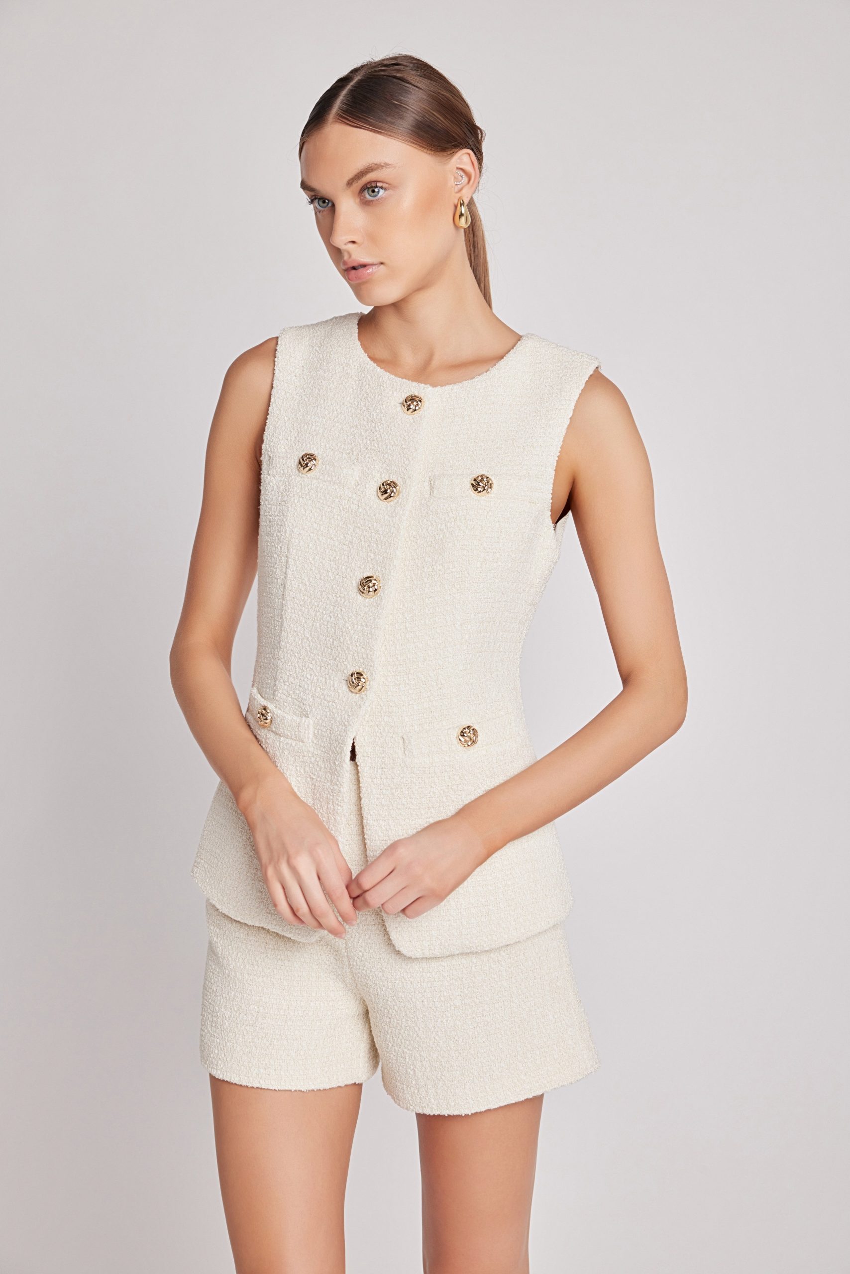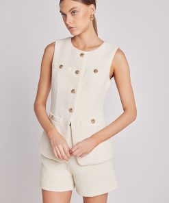 Introducing our must-have Lauren Tweed Buttoned Shorts – the perfect combination of style and comfort. Crafted with a classic tweed fabric, these shorts add a touch of sophistication to your wardrobe. The high waisted design and side zipper provide a flattering fit, while the front pocket with button adds a functional and chic detail. These versatile shorts are the ideal choice for any occasion, from a casual day out to a dressed-up event. Upgrade your summer style and stay on-trend with our Lauren Tweed Buttoned Shorts.