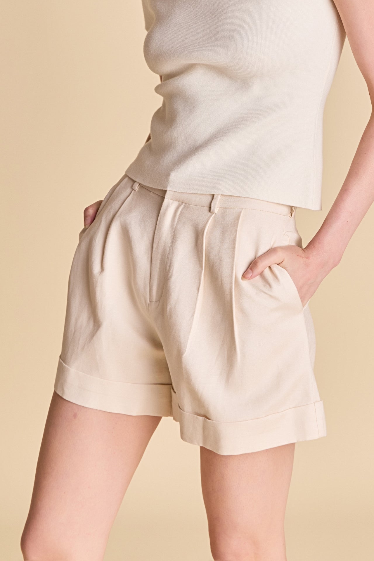 Endless Rose Women’s Linen Pintucked Shorts | Beige