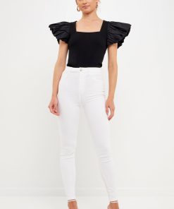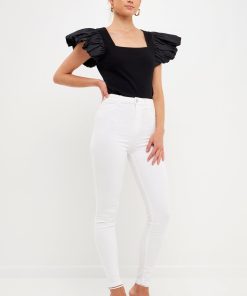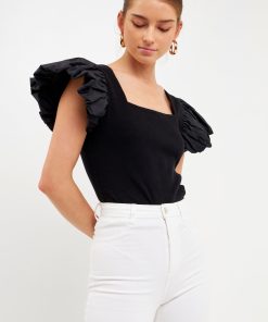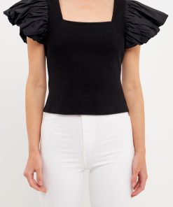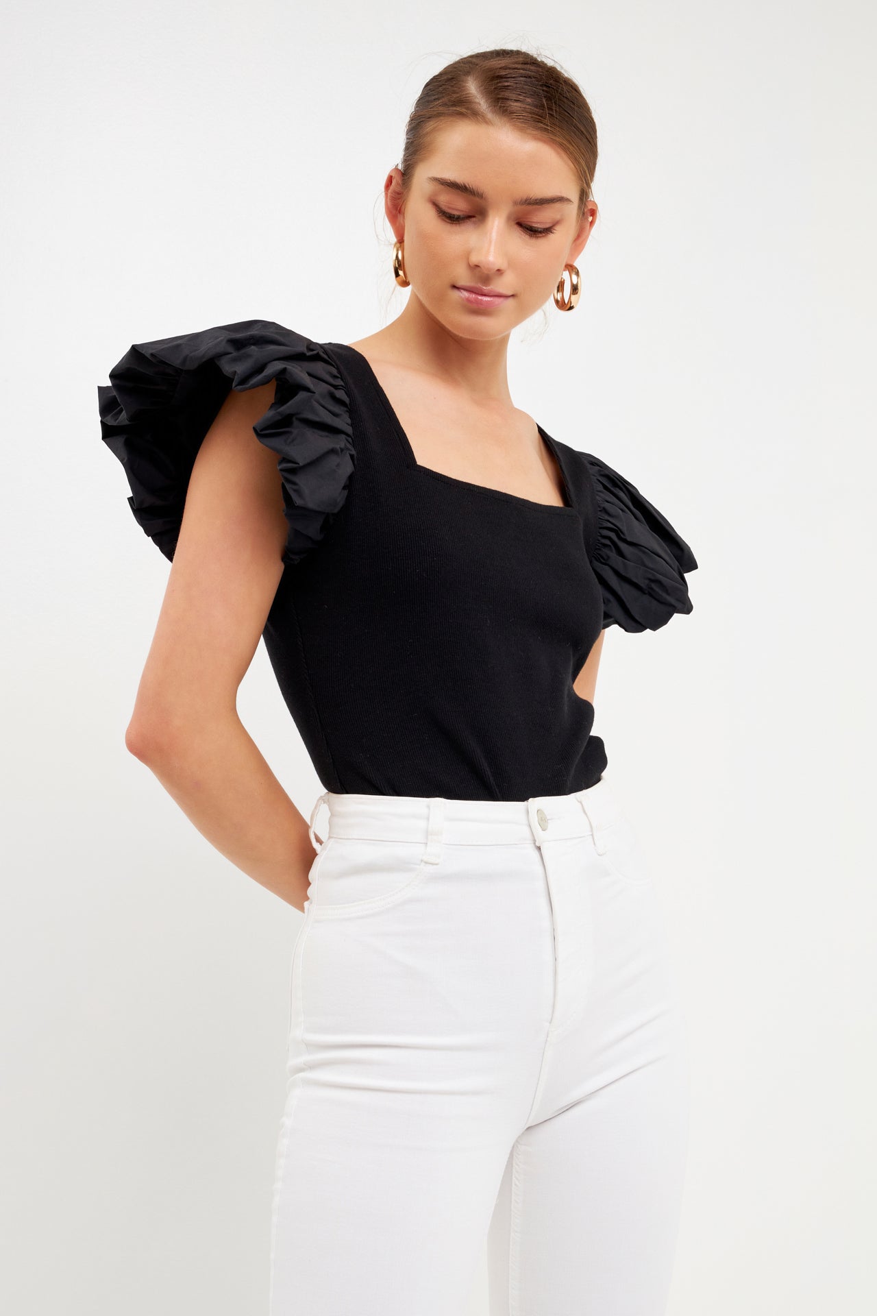 Give them something to talk about in this Mixed Media Square Neckline Knit Top. With a square neckline and ruffle sleeves, this top is perfect for a day out or a night on the town. The Mixed Media design pairs well with any bottom, making it a versatile piece for your wardrobe. Whether you dress it up or keep it casual, this top is sure to turn heads.