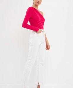 This Endless Rose Shirred One Shoulder Bodysuit is perfect for a night out or a day at the office. The one shoulder design adds a touch of elegance to this otherwise simple bodysuit. The ribbed knit fabric is figure-flattering and the baby snap buttons make it easy to get in and out of. This bodysuit can be dressed up or down to suit any occasion.