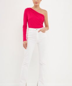 This Endless Rose Shirred One Shoulder Bodysuit is perfect for a night out or a day at the office. The one shoulder design adds a touch of elegance to this otherwise simple bodysuit. The ribbed knit fabric is figure-flattering and the baby snap buttons make it easy to get in and out of. This bodysuit can be dressed up or down to suit any occasion.