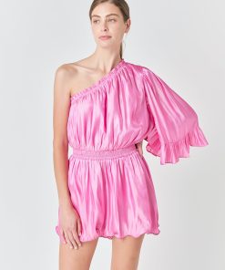 This stylish one shoulder romper is the perfect choice for a night out. Crafted from shiny fabric it features an asymmetric neckline that is ruffled for a flirty touch. The fitted bodice and elastic waistband make it comfortable to wear while the short length will show off your legs.