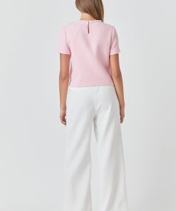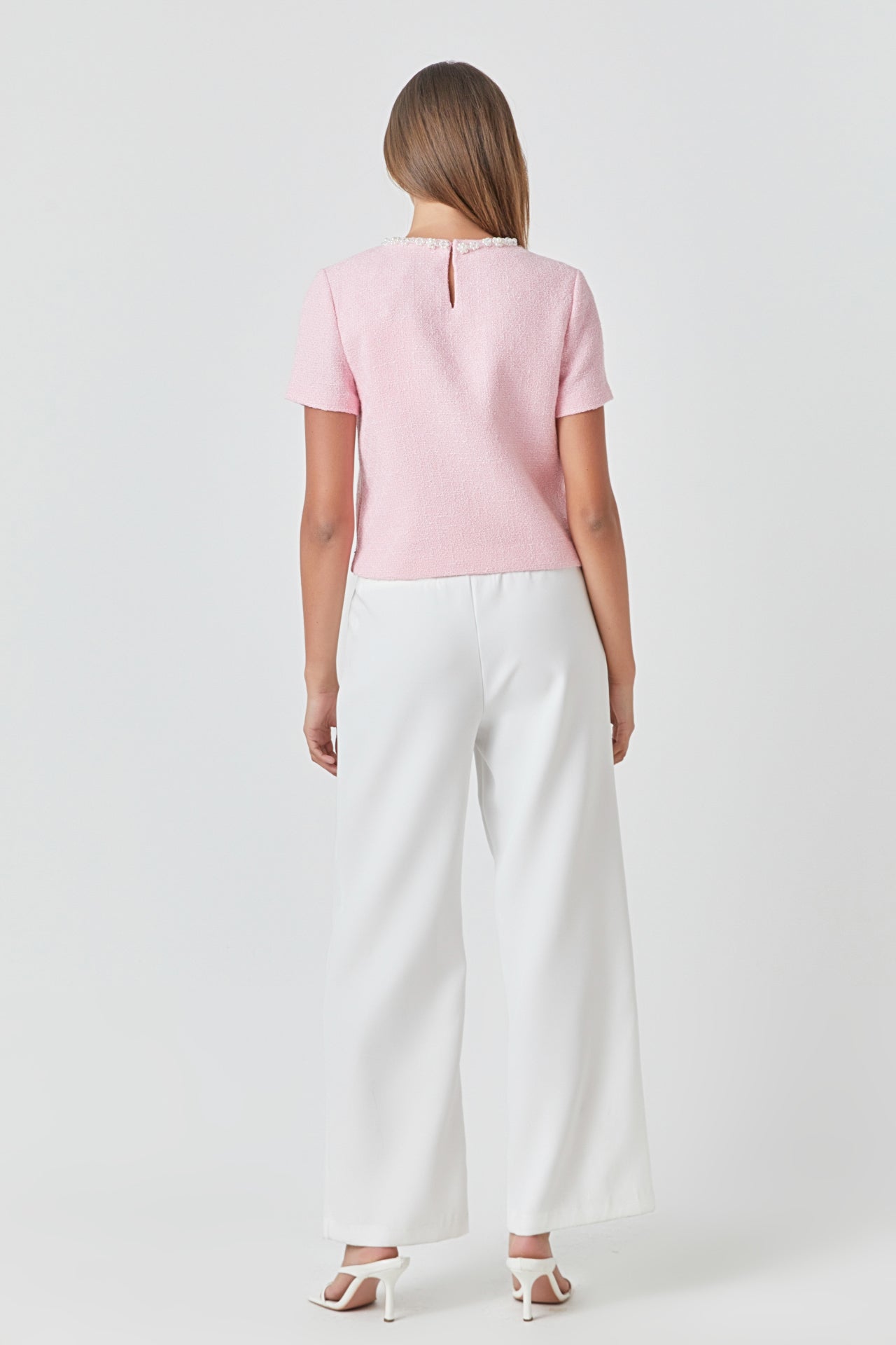 Introducing our stunning Pearl Trim Linen Top – a must-have for your wardrobe! Made with high-quality linen this top is both comfortable and stylish. The exquisite pearl trim at the neck adds a touch of elegance to the design making it perfect for any occasion. With a back keyhole and button and loop closure it is easy to slip on and off while still maintaining a chic look. Perfectly versatile for dressing up or down this top will become your go-to piece. Upgrade your wardrobe with our Pearl Trim Linen Top a timeless and fashionable addition.