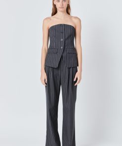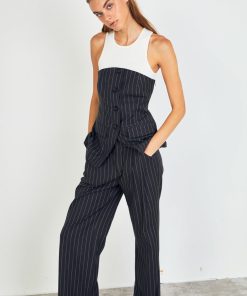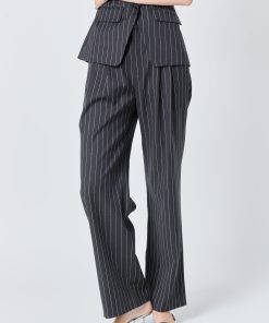Introducing our Pinstriped High Waisted Trousers, the ultimate fusion of style and comfort. These pants feature a flattering high waist design, making them a versatile addition to any wardrobe. The pleated detailing adds a touch of sophistication, while the back welt pockets and front pockets provide functionality. Made with high-quality fabric, these trousers ensure a comfortable and long-lasting wear. Perfect for both casual and formal occasions, these trousers are a must-have for any fashion-forward individual. Elevate your style and make a statement with our Pinstriped High Waisted Trousers.