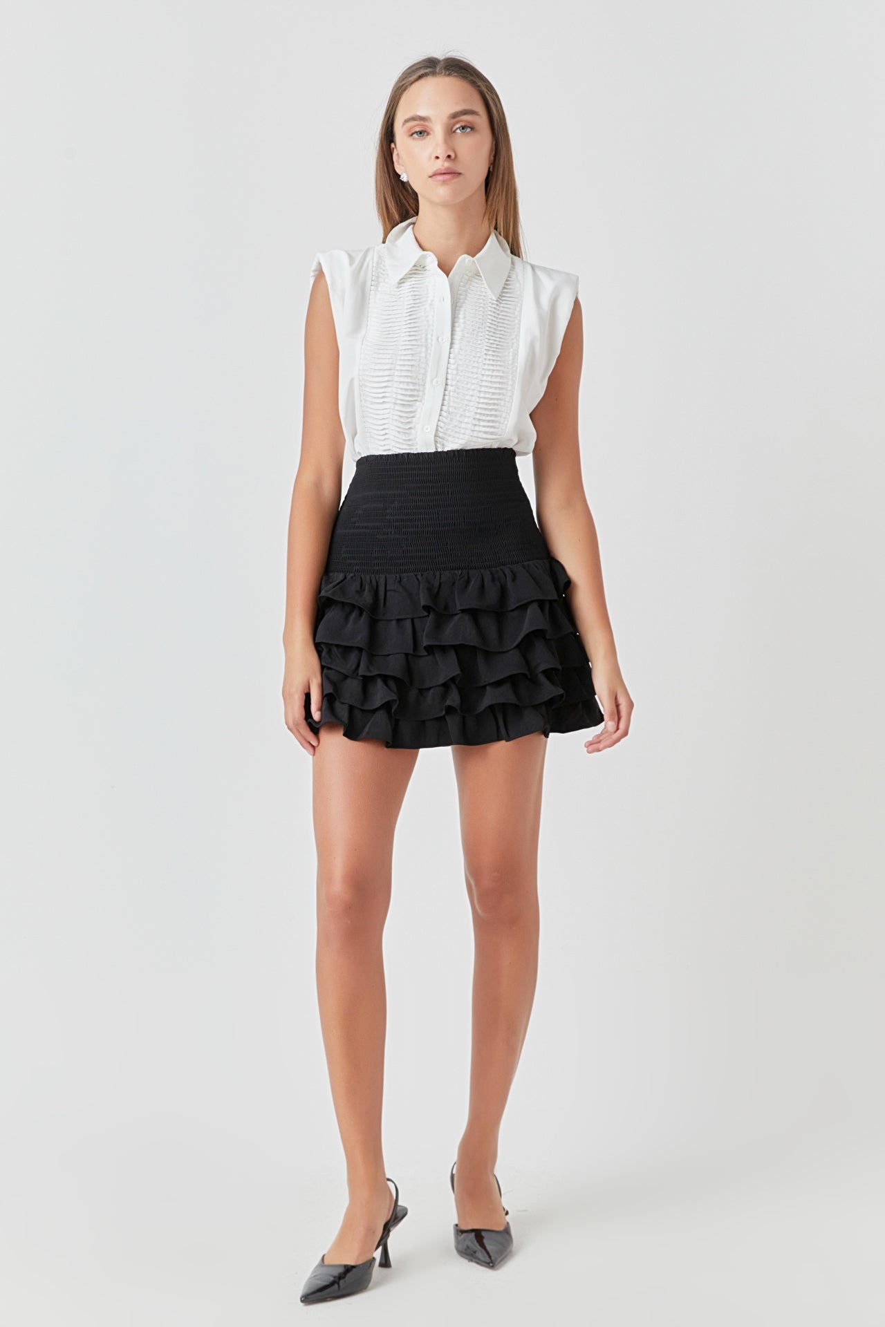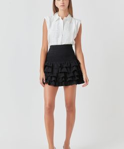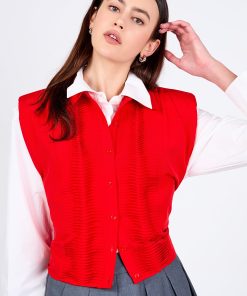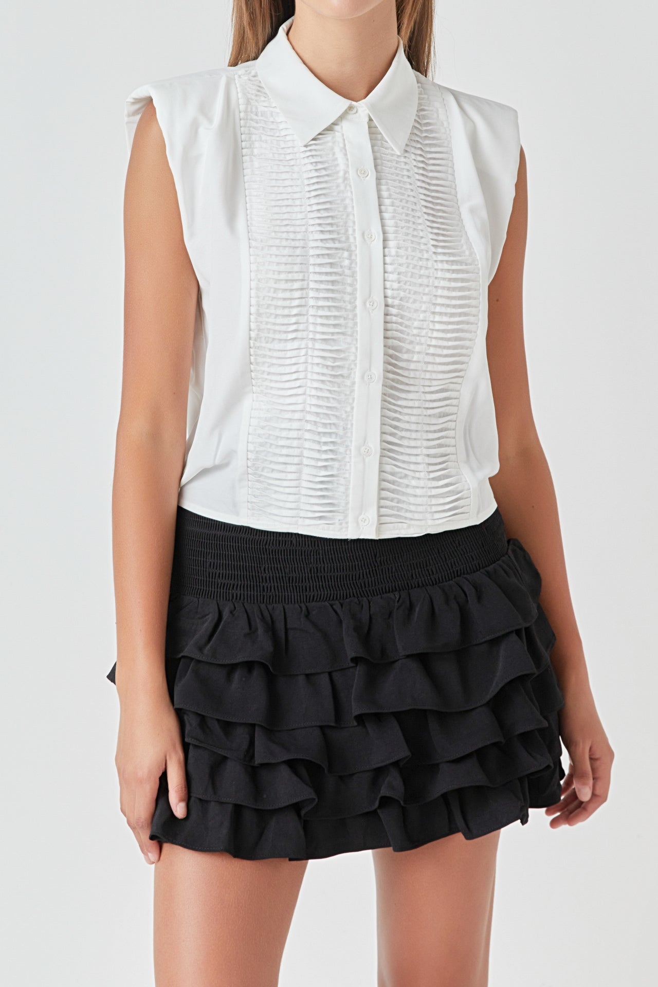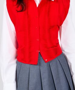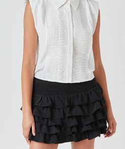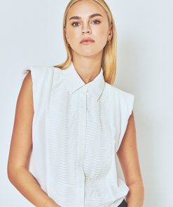 Introducing our must-have Pintuck Details Sleeveless Blouse the ultimate combination of class and charm. With a classic collar and flattering sleeveless design this blouse is perfect for any occasion. The added shoulder pads provide just the right amount of structure while the front pintuck details add a touch of sophistication. Made from high-quality fabric this blouse will keep you comfortable and stylish all day long. Elevate your wardrobe with our Pintuck Details Sleeveless Blouse perfect for a day at the office or a night out on the town. Don’t miss out on this timeless piece.
