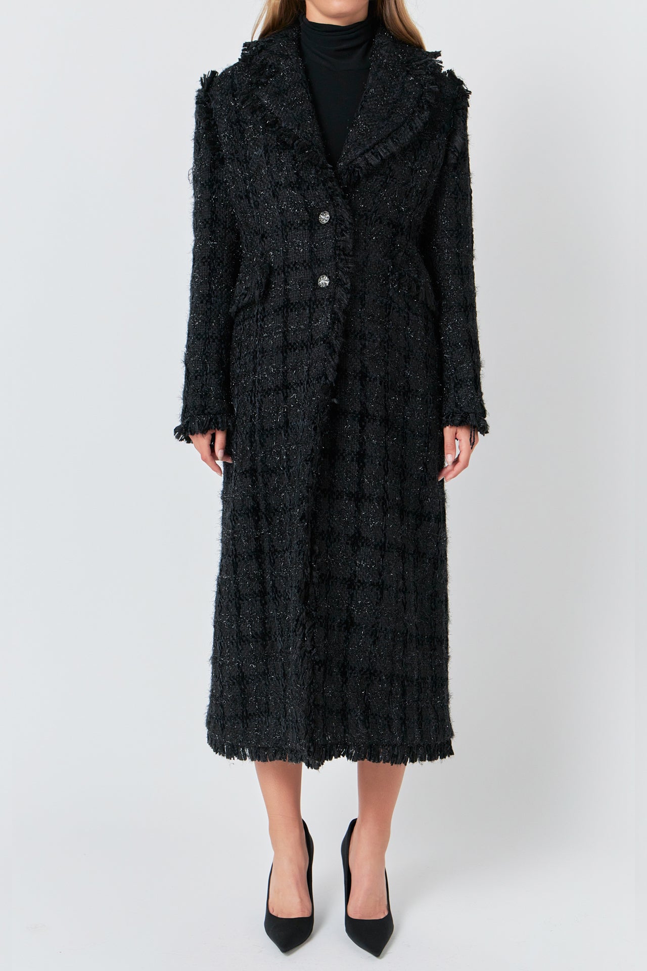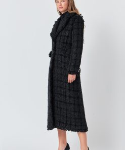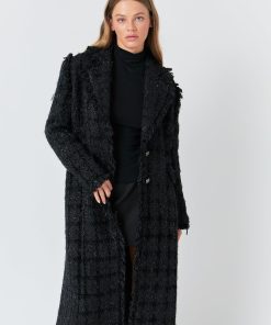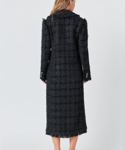 Endless Rose Women’s Premium Long Tweed Coat | Black