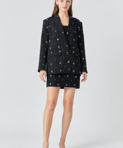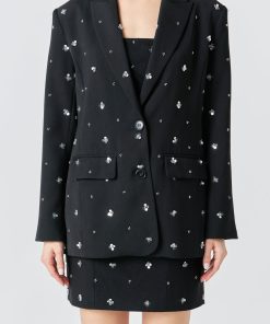 This Sequins Floral Embroidery Blazer is perfect for making a statement. Its oversized silhouette and two button closure ensure a comfortable fit while its sequins and welt pockets with flap bring added style and functionality. Elevate your look today with this unique blazer.