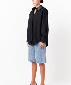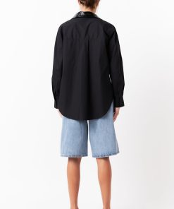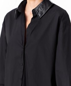 Our Pu Collared Oversize Shirt makes the perfect addition to any wardrobe! Cut with a slightly oversized fit this half-button-up shirt features a PU collar and structured seams for a timeless look. Crafted with premium materials this shirt is designed to last. Make a stunning wardrobe statement with our Pu Collared Oversize Shirt!