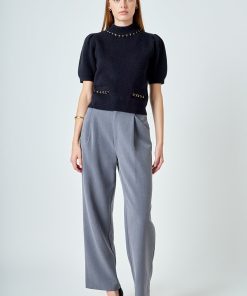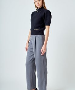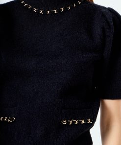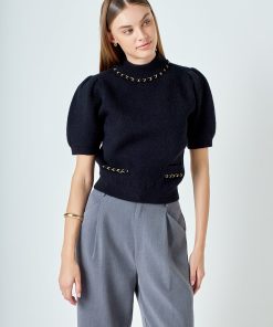Introducing our Puff Chain Detailed Knit Top, the perfect combination of style and comfort. Crafted from luxurious knit fabric, this top features a flattering mock neck and on-trend puffy short sleeves. But what truly sets it apart is the front welt pockets adorned with chic chain trim. It’s a versatile piece that can be dressed up or down, making it a must-have for any wardrobe. Embrace the latest trends and elevate your look with this statement top. Order now and experience the perfect blend of fashion and functionality.