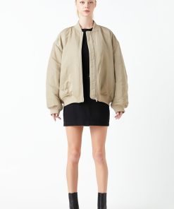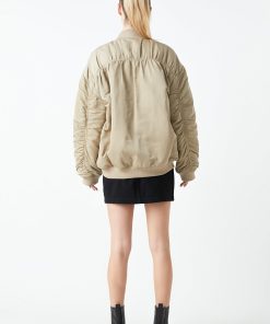 Unlock your streetwear style with this Ruched Bomber Jacket. Featuring a classic bomber silhouette with long sleeves front zipper closure and ruched detailing at the back. This unique jacket will update any look making it perfect for any occasion. The ruched detailing gives it an extra edge that sets it apart from other bomber jackets. Stay stylish and explore the possibilities with this Ruched Bomber Jacket that is sure to become a wardrobe staple.