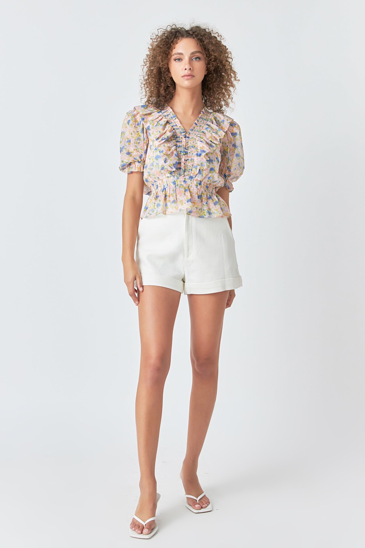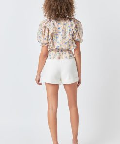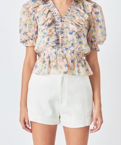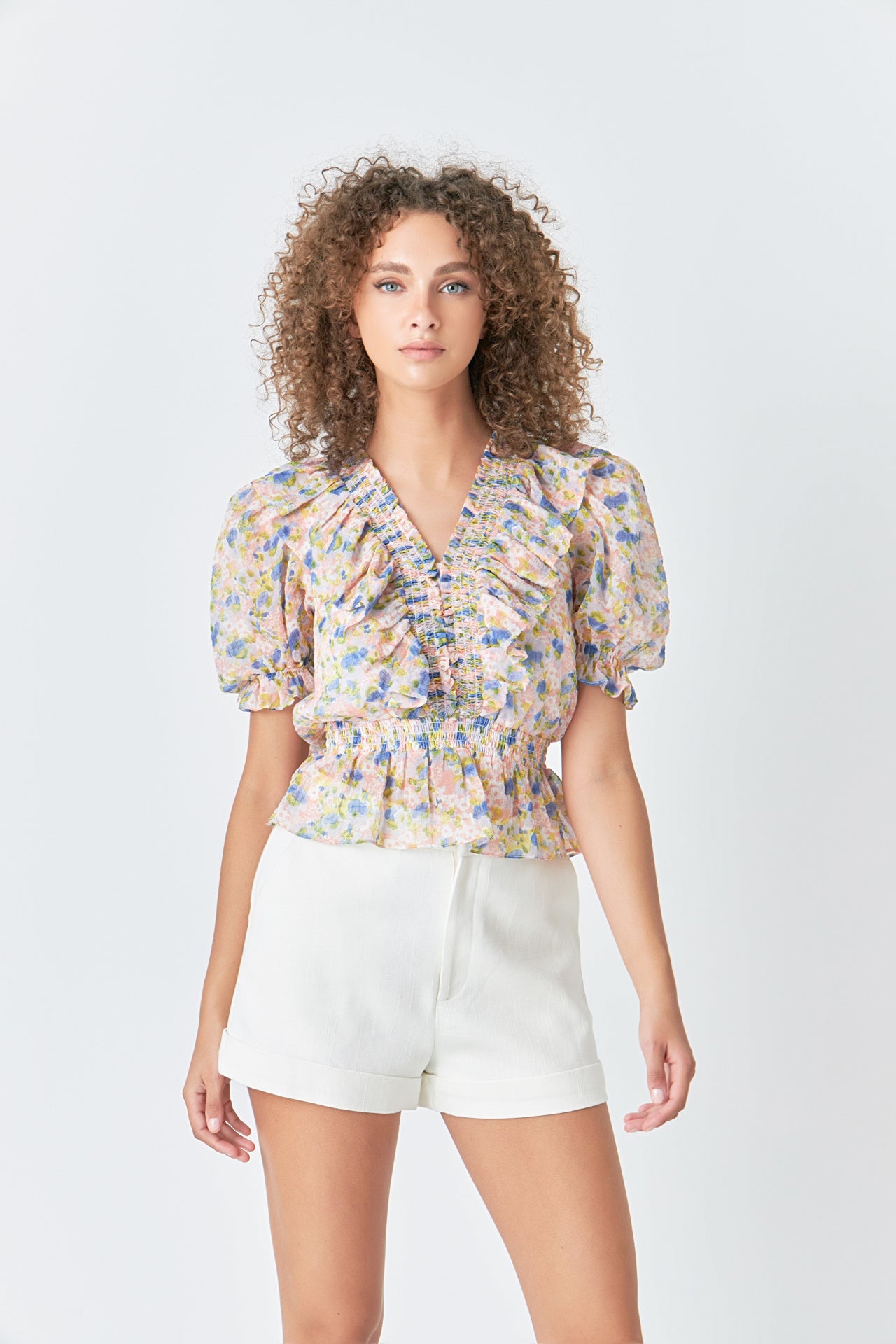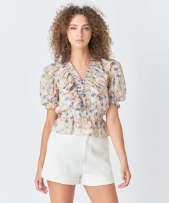 Endless Rose Women’s Ruffle Bodice Top With Puff Sleeves | Pink Multi