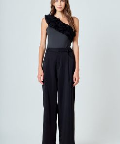 Take your style to the next level with this ruffled asymmetrical bodysuit. No need to worry about tucking or readjusting. This sleek fitted bodice has a striking asymmetrical shoulder and a delicate ruffled neckline for a touch of sophistication. It’s the perfect way to add an unexpected twist to your wardrobe morning noon or night!
