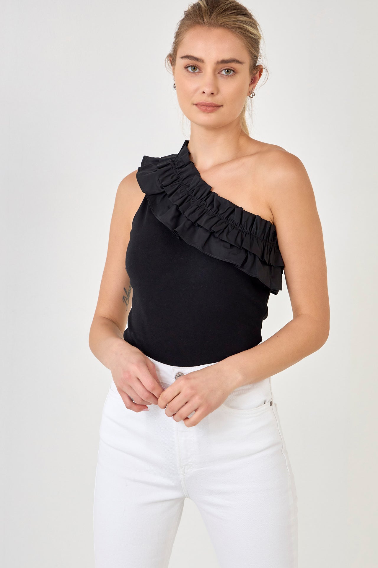Looking for something a little different in a bodysuit? Our Ruffled Asymmetrical Bodysuit is perfect for you! This one-shouldered bodysuit features ruffle detail and a bottom snap button closure. It’s a unique and fun option for a night out or any special occasion.