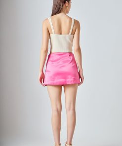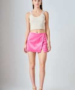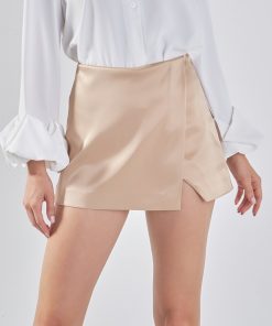 Upgrade your wardrobe with our Satin Asymmetric Skort. Made from luxurious stretch satin it offers both comfort and style. The midi rise and mini length create a flattering silhouette while the front wrap style adds a touch of sophistication. Perfect for any occasion whether it’s a night out or a day at the office. Get ready to turn heads and make a statement with our unique skort. Elevate your look and stand out from the crowd. Shop now and experience the ultimate combination of comfort and fashion.