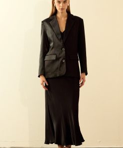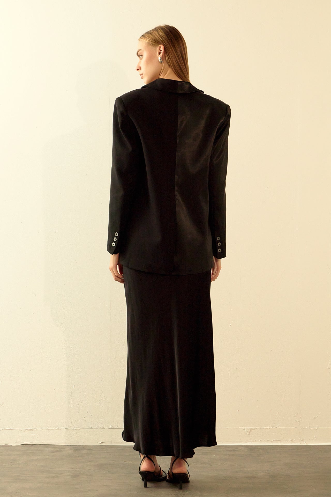 Our Satin Suit Blazer offers a unique blend of style and function perfect for any occasion. The mixed fabric composition gives it a subtle texture that sets it apart from your everyday blazer. Its slightly oversized design is flattering to all body shapes and creates an instant slimming effect. Its flap pockets add extra detail and functionality while the satin combo brings the blazer to life giving it an elevated feel. Ideal for any occasion this blazer will add that special touch to any look.
