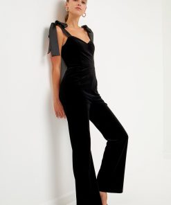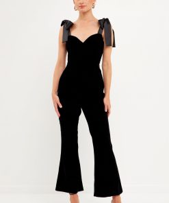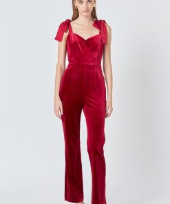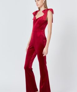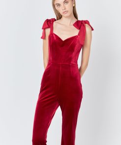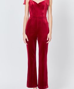 Endless Rose Women’s Satin Velvet Sweetheart Jumpsuit | Green|red|black