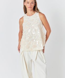Endless Rose Women’s Scallop Sequin Top | Cream