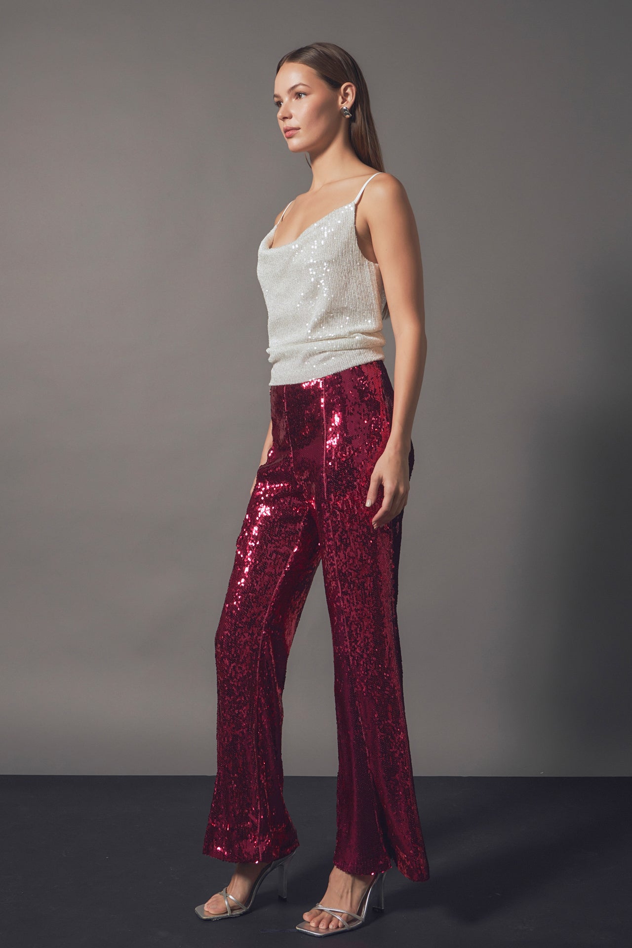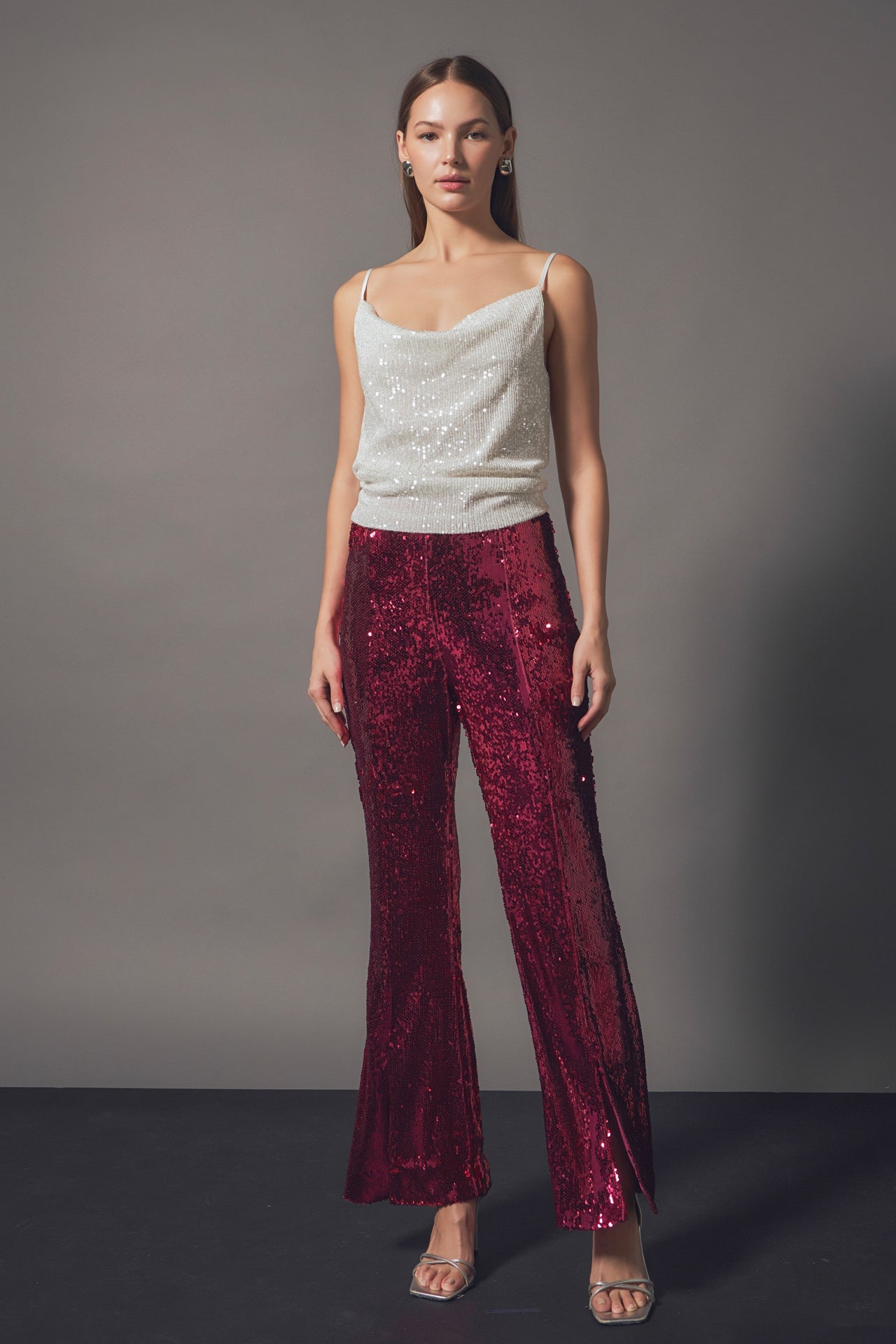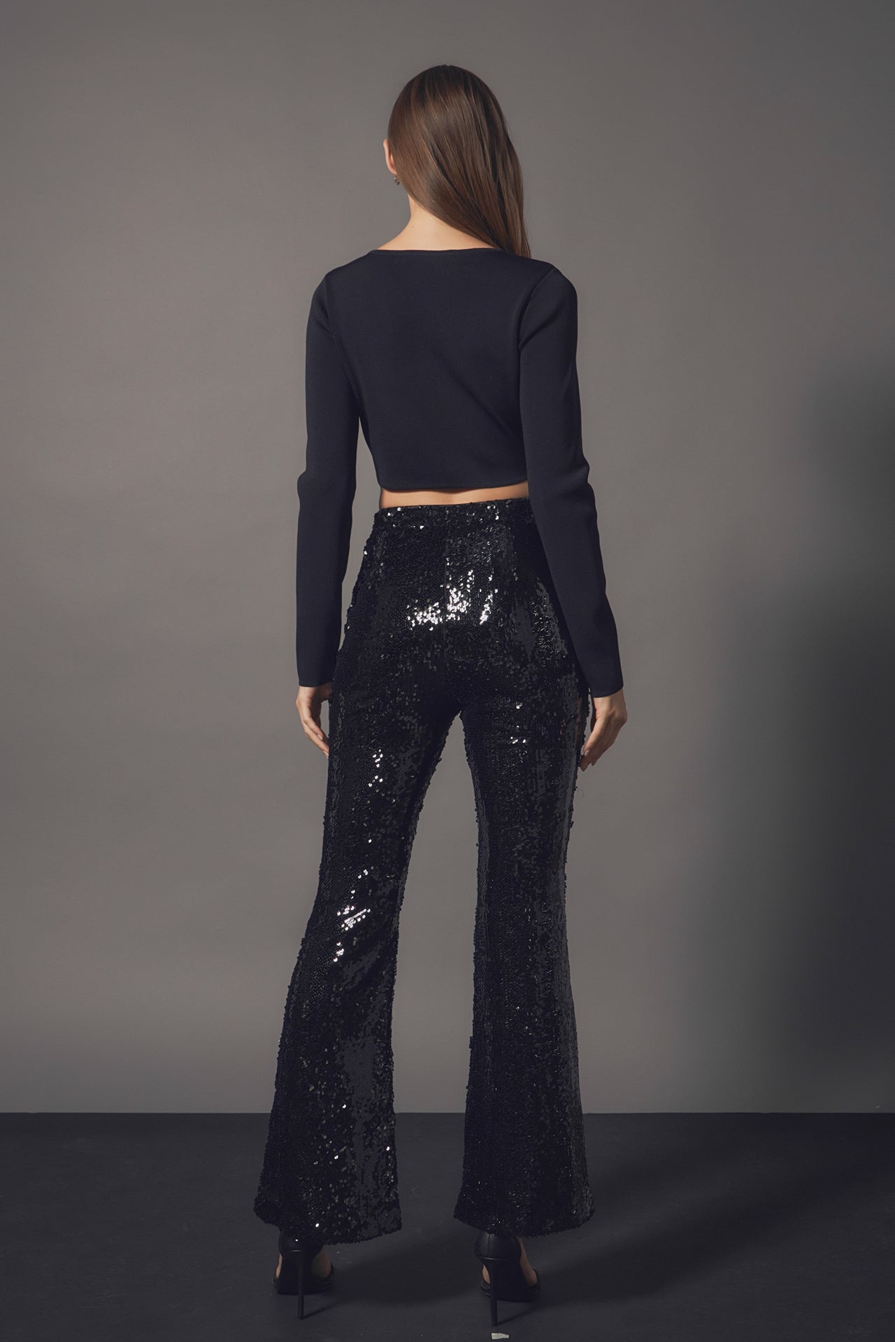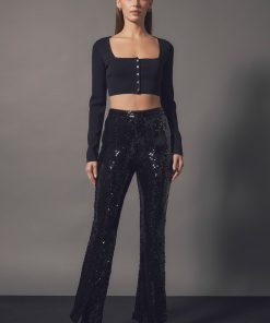 Our Sequin Flare Pants are so much fun, you’ll never want to take them off! These sequin pants stand out from others because they feature a mini flare with a front slit. Throw on these pants for any special occasion, just be ready for all of the compliments you’re going to get!