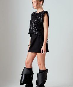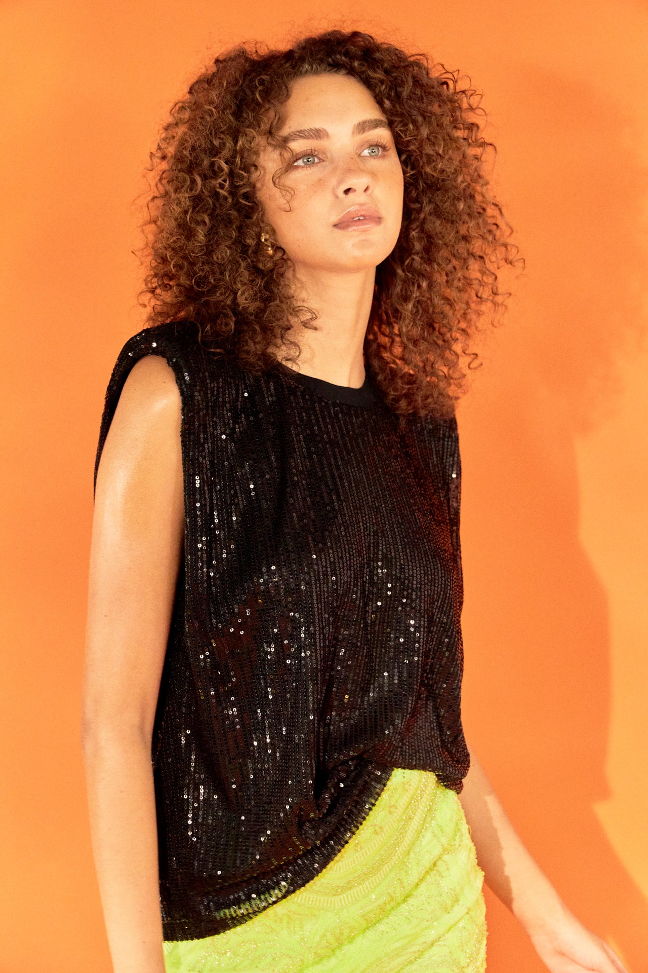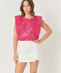 Go glam with this Sequin Shoulder Pad Top. Made of sequins, this top is perfect for all your favorite occasions. You can even pair this sequin top with trousers for a dazzling work outfit. Put on your favorite pair of jeans or high-waisted pants and you’re ready to party!